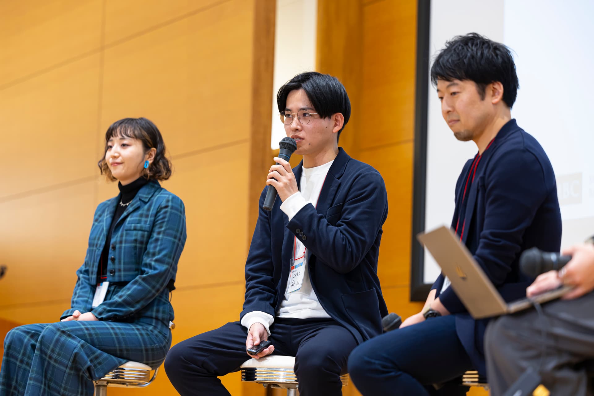 小椋瑞希氏(株式会社乃村工藝社 ビジネスプロデュース本部 第一統括部 新領域プロジェクト開発部)、秋山峻亮氏(株式会社三井住友銀行 社会的価値創造推進部 事業企画グループ 部長代理)、廣岡大亮氏(W Inc.代表取締役)が、「社会と経済のバランス」「大企業の地域連携」などについて語り合った。モデレーターは、大森愛氏(,too inc コミュニケーションデザイナー)。
