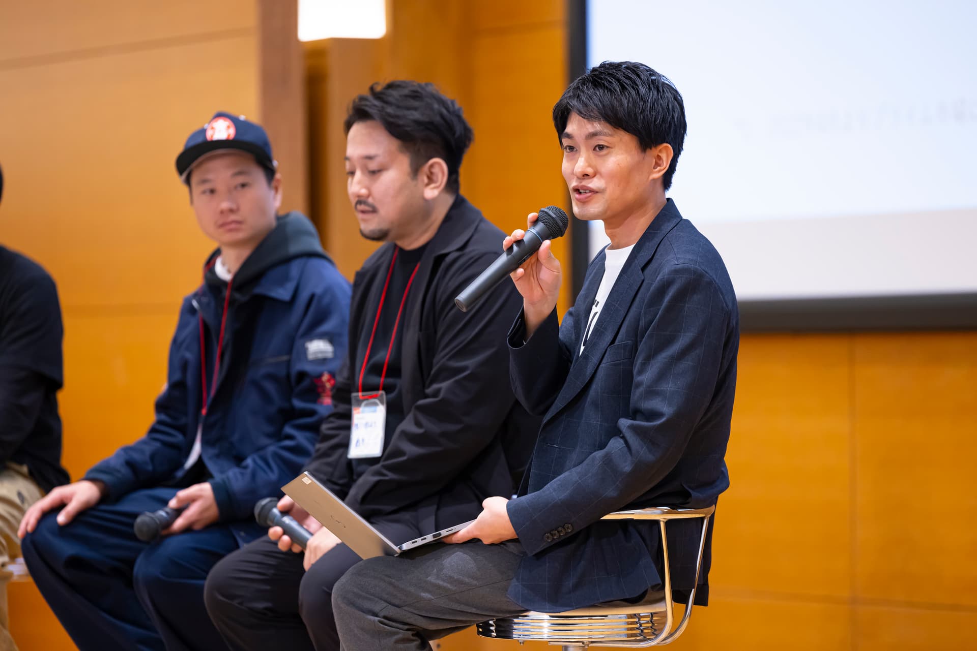 登壇者は、世界中のセラミックアーティストをキュレーションするヤン・トゥーレ氏(Maison Wabi-Sabi 創設者)、カカオと日本の茶道の融合を提案する中野由香理氏(カカオごと 代表)。海外起業家でありビジネスプロデューサーの渡辺大輔氏(唐泊漁港 プロモーター/渡辺大輔有限公司)。
