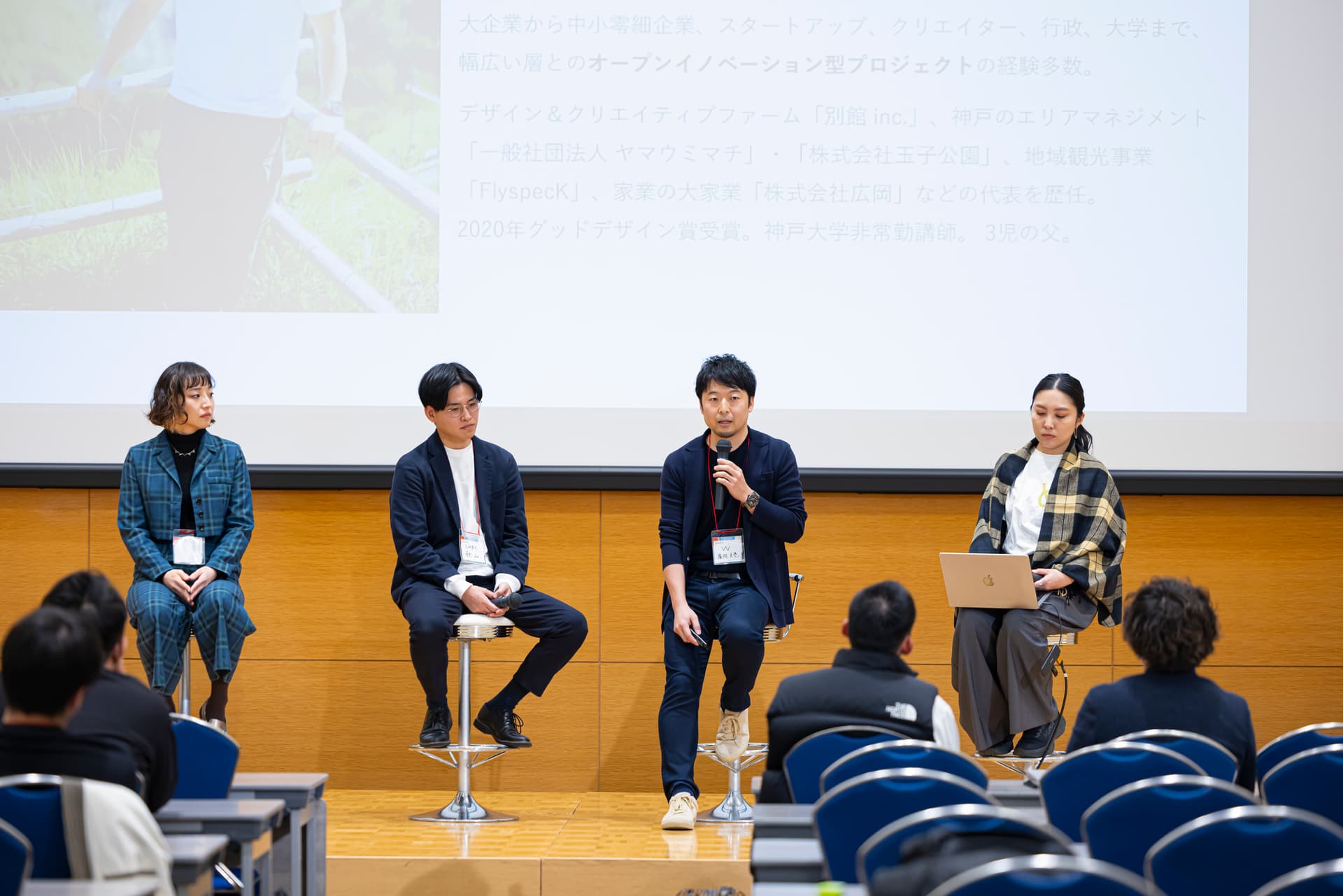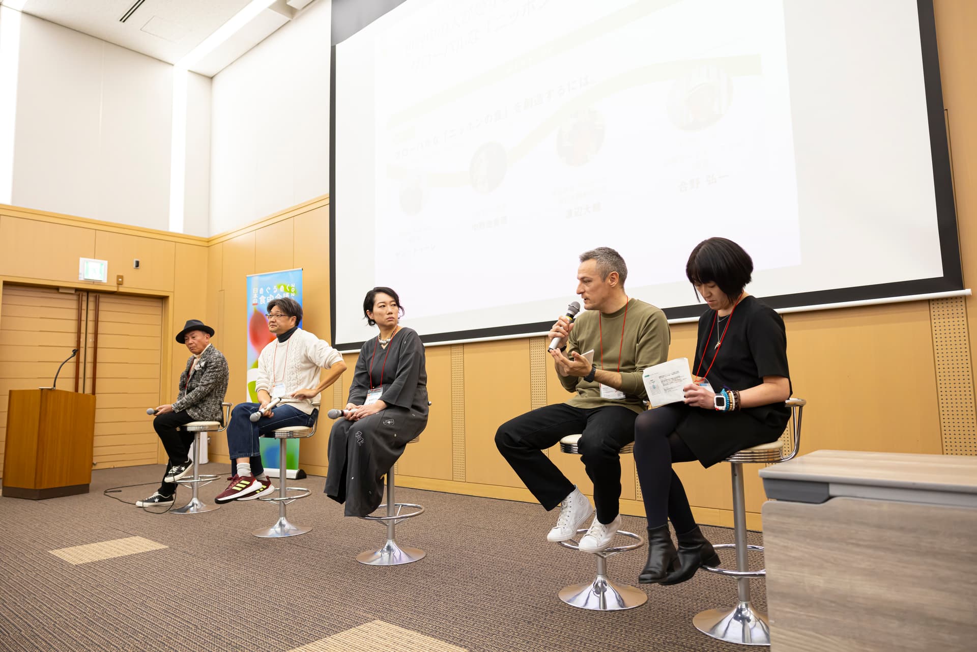 日本の文化・食材を海外に発信するプレーヤーが、それぞれのアプローチを語った。モデレーターは、福岡フードテックラボ会長の合野弘一氏が務めた。