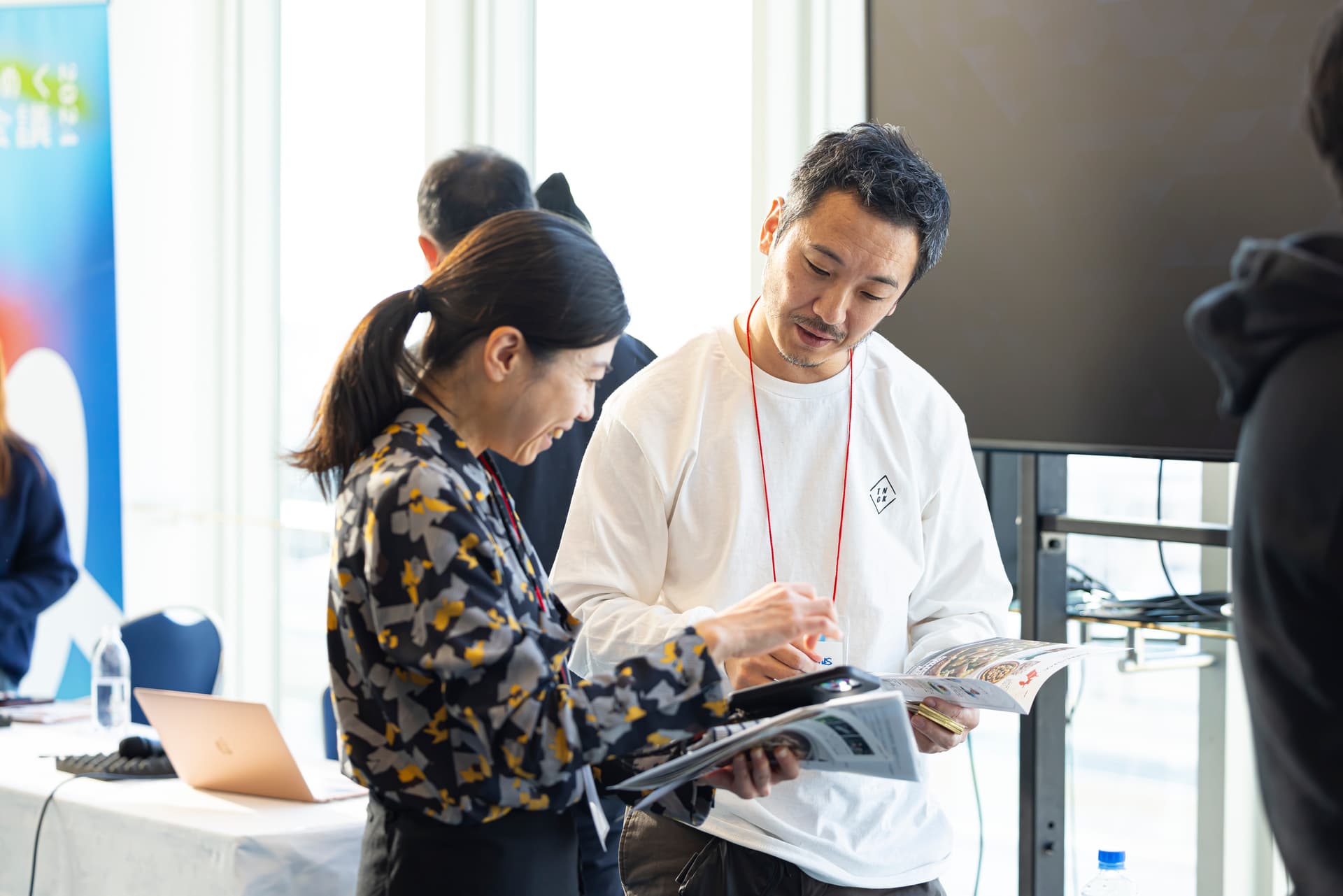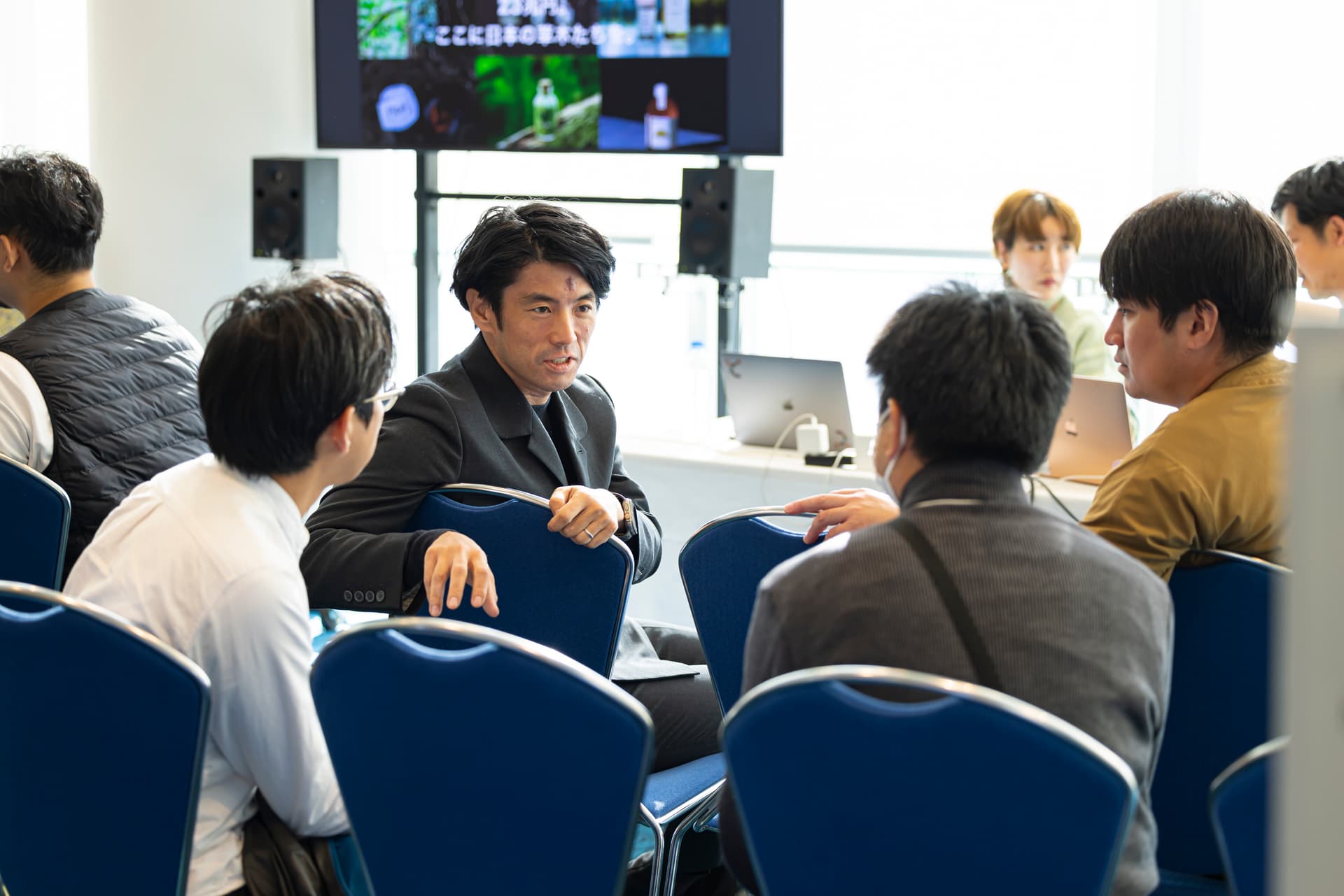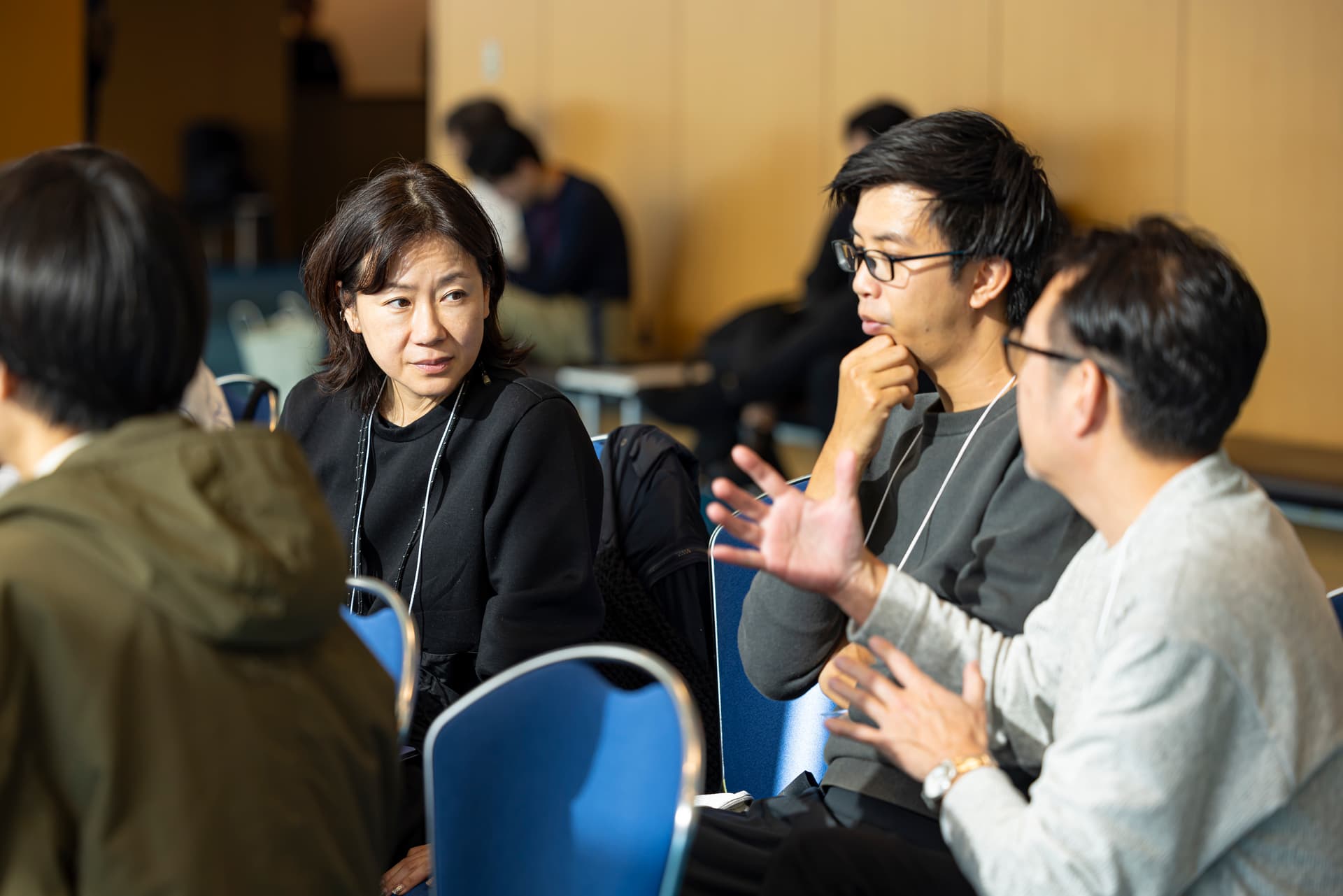 同時進行で開催されたハタウチカイ。セッションの前後は、会場のあちこちでテーマについて意見を交わす様子が見られた。