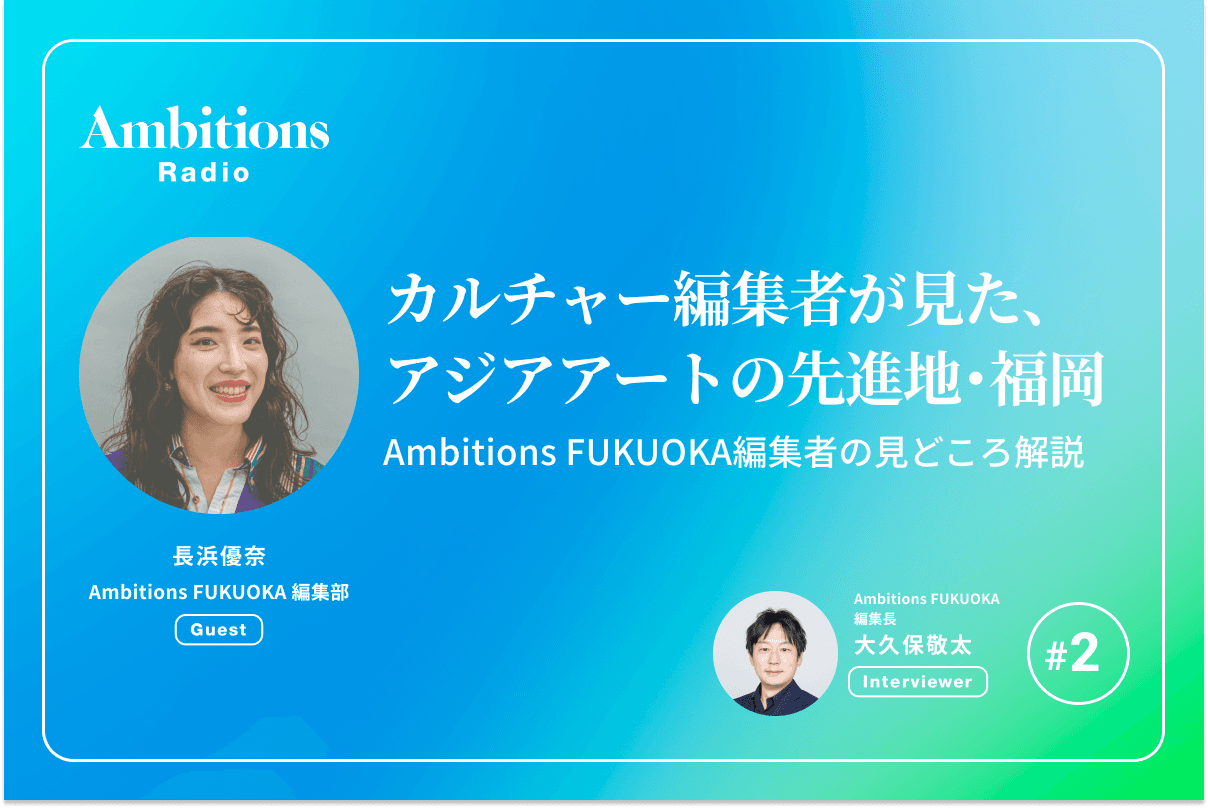 「Ambitions FUKUOKA Vol.2」の発売を記念して、編集部メンバーによるPodcast番組を3話連続配信。 取材の裏話や誌面の狙いを、web限定でお届けします。 第三回は「カルチャー特集」などを担当した@長浜優奈。 カルチャー誌出身、Iターンで福岡へ移住した彼女が見た、福岡のカルチャーとは?