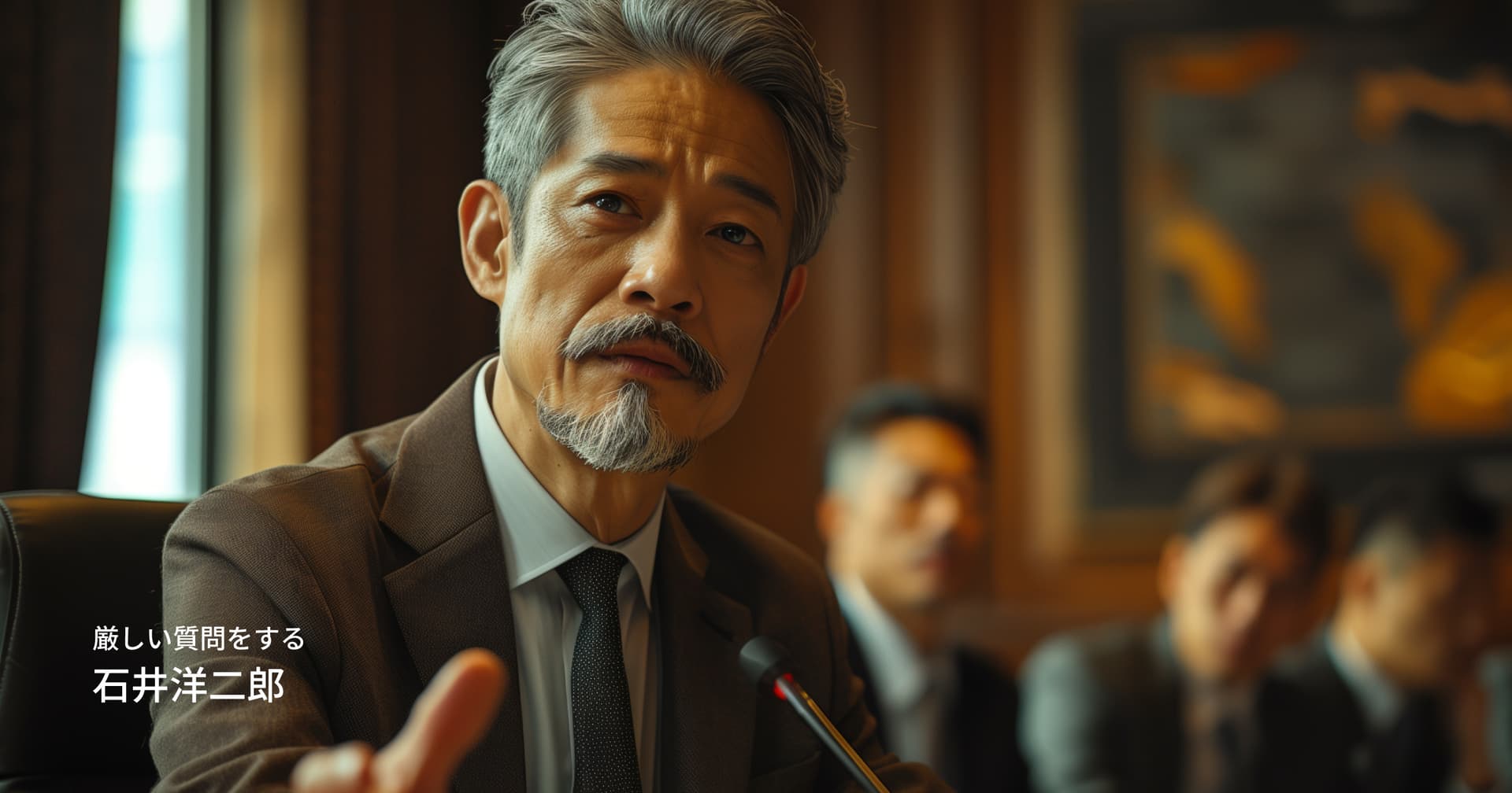 しかし、石井の表情は他の審査員たちとは明らかに違っていた。彼は腕組みをし、厳しい表情で飯島を見つめていた。