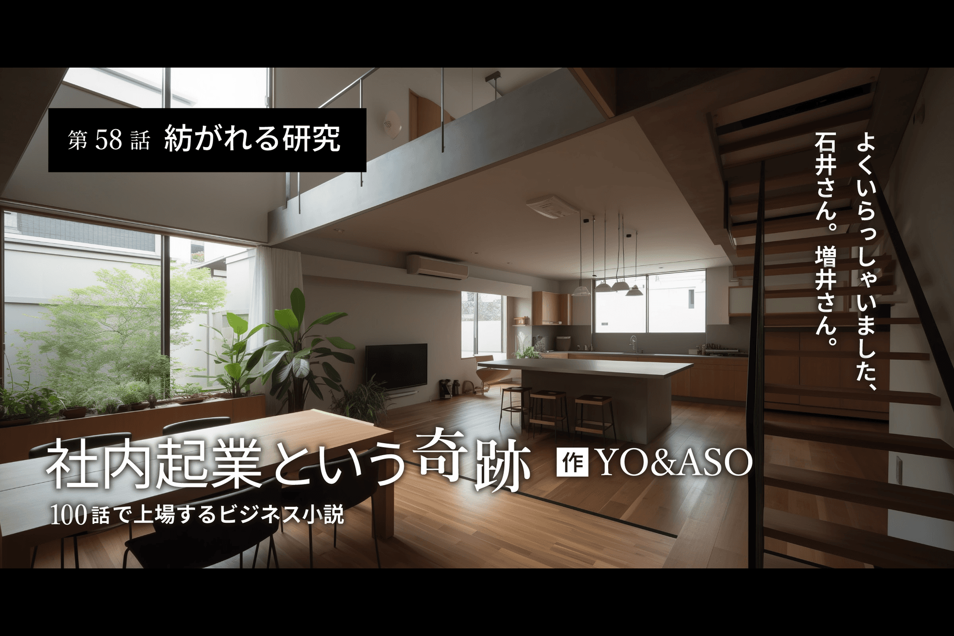 藤堂の言葉に、増井はハッとした。石井が二次審査のプレゼンテーションで自分たちに厳しい言葉を投げかけながらも、どこか期待を込めた眼差しを見せていたことを思い出した。隣に座る石井は、真剣な眼差しで藤堂と増井をだまって見つめていた。