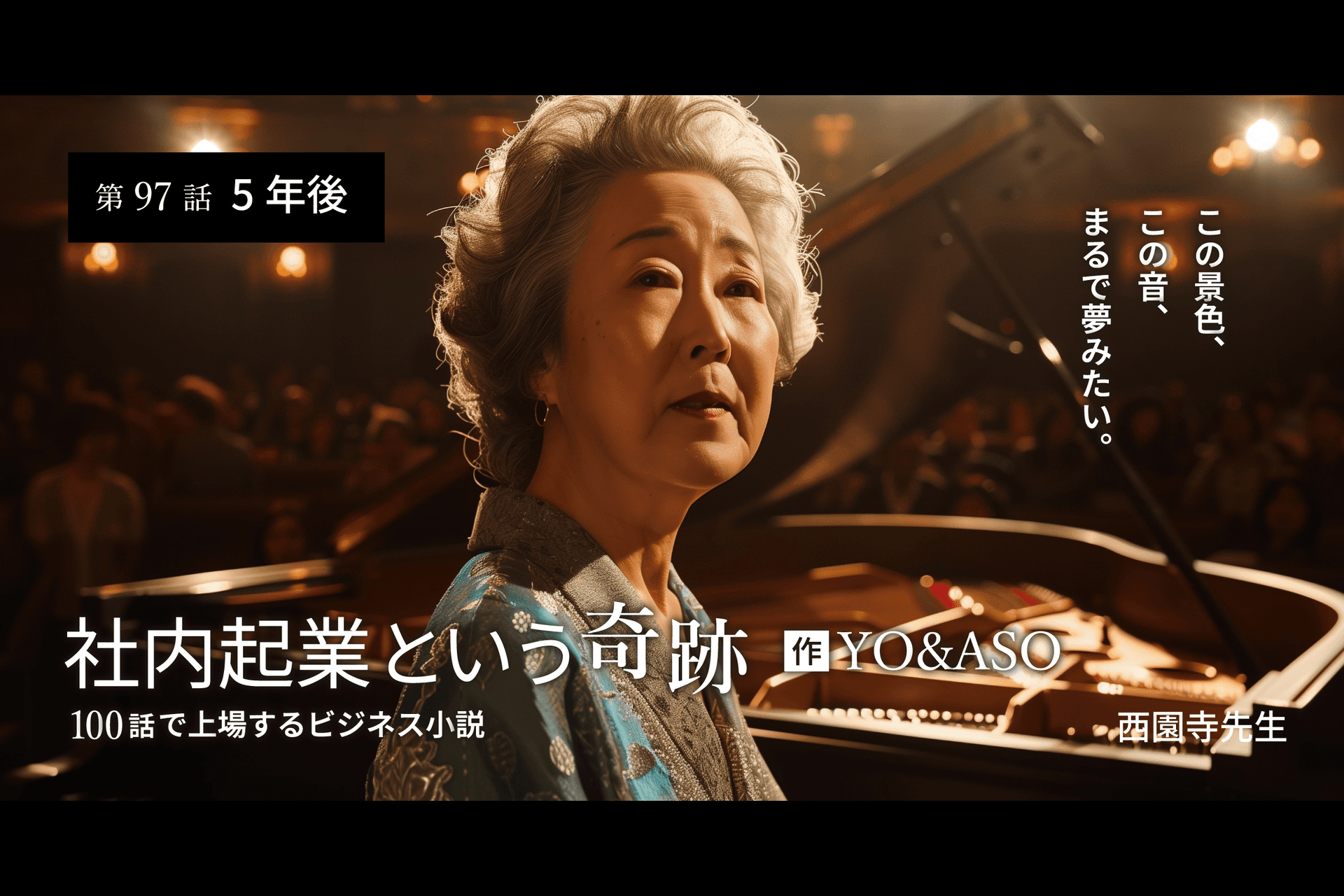 ニューヨーク・マンハッタン。高層ビル群が織りなす摩天楼の夜景をバックに、荘厳なコンサートホールが静かに佇んでいた。世界的に有名な音楽ホールだ。スポットライトが舞台中央の一点に絞られ、静寂の中、白いイブニングドレスを身に纏った西園寺先生がゆっくりと歩みを進める。5年前、指の変形に苦しみ、ピアノを諦めざるを得なかった彼女が再びこの舞台に立てる日が来るとは、誰が想像しただろうか。