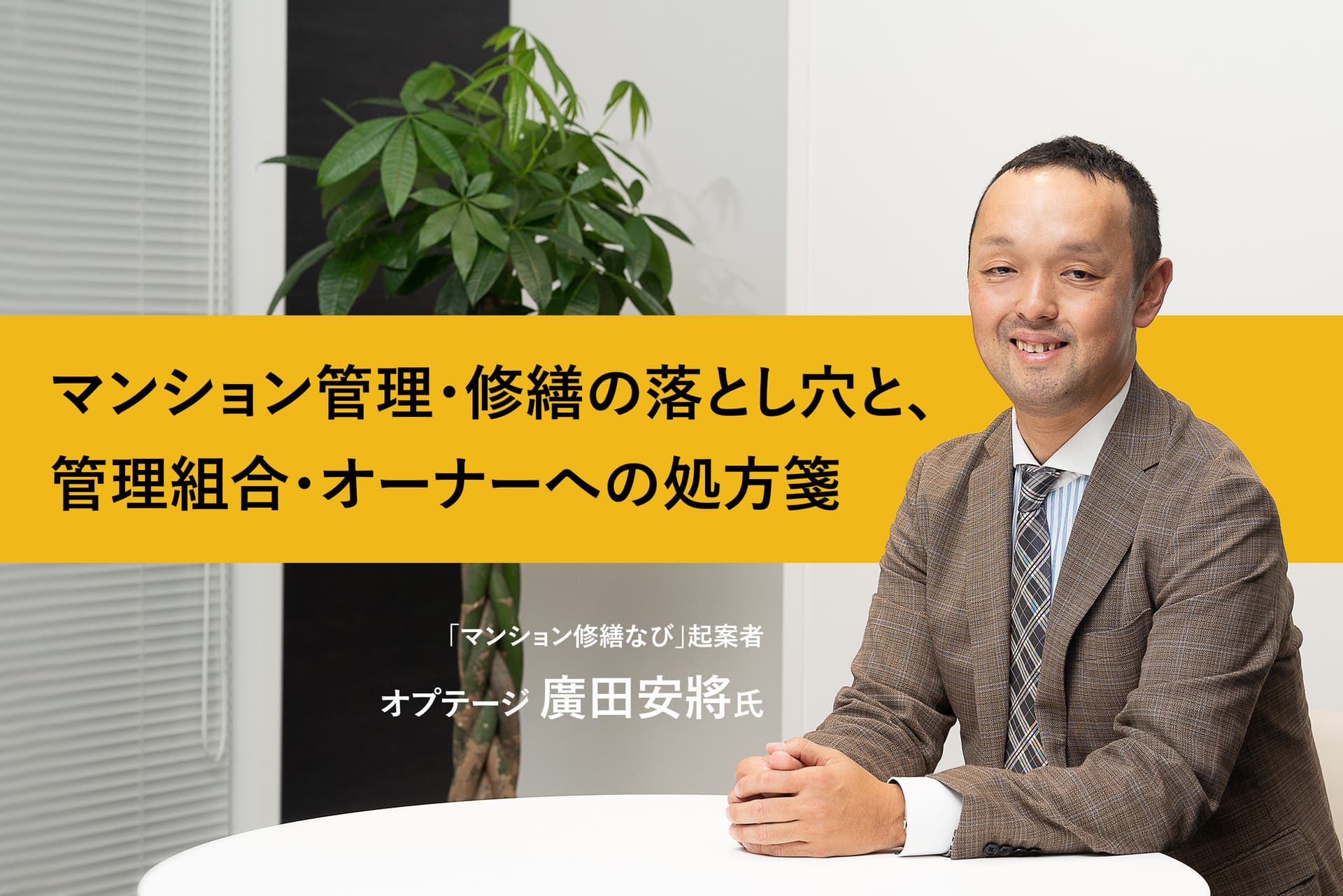 全国、特に都市部で増加の一途をたどるマンション。理想的な住まいを購入したその先には、実は煩雑な管理組合業務や大規模修繕画、少なくない修繕積立金の負担が待ち構えている。オプテージが手がける「マンション修繕なび」は、マンションの理事会や管理組合が直面する問題に真正面から光を当て、解決に取り組む革新的なサービス。「マンション修繕なび」を立ち上げた廣田安將氏にマンション管理・修繕の落とし穴と、管理組合・オーナーへの処方箋を伺った。大切な住まいを守り、快適な共同生活を築く鍵となる知見を身につけておきたい。