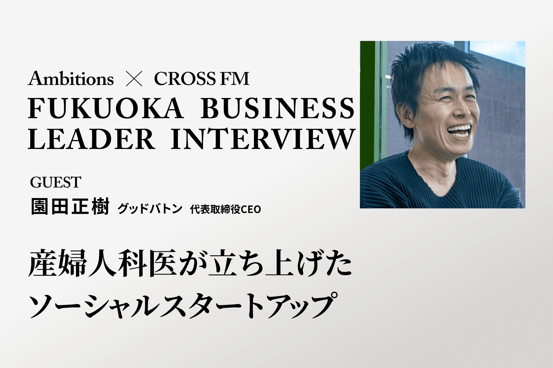 九州を拠点に活動するビジネスリーダーを迎える、CROSS FMとAmbitions FUKUOKAによる共同インタビューシリーズ。 今回ゲストは、株式会社グッドバトン代表取締役CEOの園田正樹氏。 産婦人科医として15年の経験を持つ園田氏は、「子育てに、より多くの選択肢を持てるように」をミッションに掲げて2017年に起業。病児保育ネット予約サービス支援システム「あずかるこちゃん」を展開している。 病児保育の現状を踏まえながら、園田氏が「あずかるこちゃん」にこめた思いを聞いた。