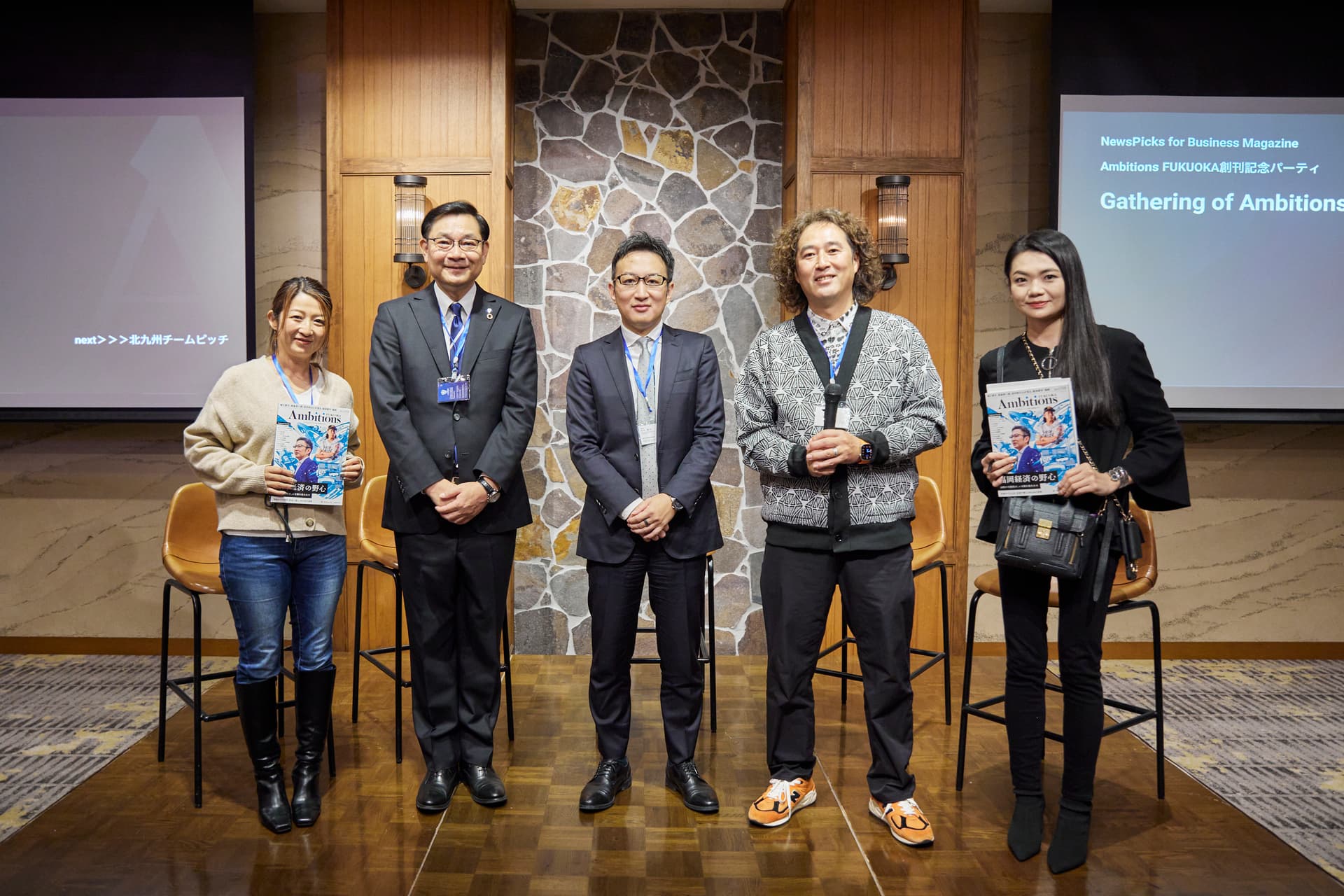 2023年11月14日、NewsPicks for Businessが刊行するビジネスマガジン『Ambitions』の姉妹版として、福岡経済にフォーカスした『Ambitions FUKUOKA』が創刊された。それを記念して11月13日、博多駅近くの「WITH THE STYLE FUKUOKA」で関係者を招いたパーティーが開催。福岡を牽引するビジネスリーダーら約130名が集まり、盛り上がりを見せた。本記事ではその様子をレポートする。