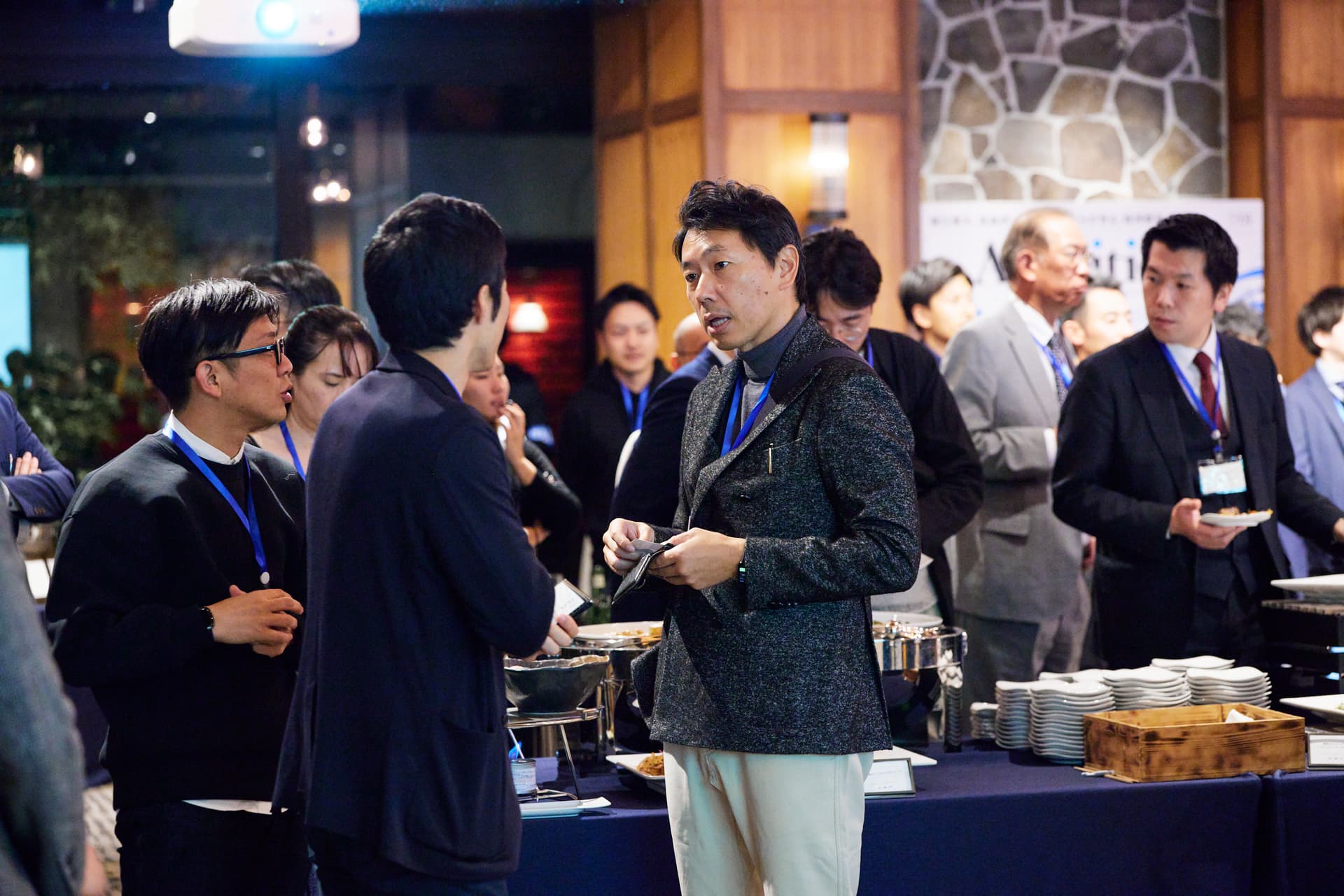 福岡経済のコミュニティーの特徴として挙げられるのが、人と人とのつながりの“近さ”と“濃さ”。今回のイベントも参加者同士が友人・知人の関係、もしくはビジネスパートナーというケースも多く、そこからさらに知人を紹介して新たなつながりが生まれるなど、会場のあちらこちらで盛んなネットワーキングの様子が見られた。