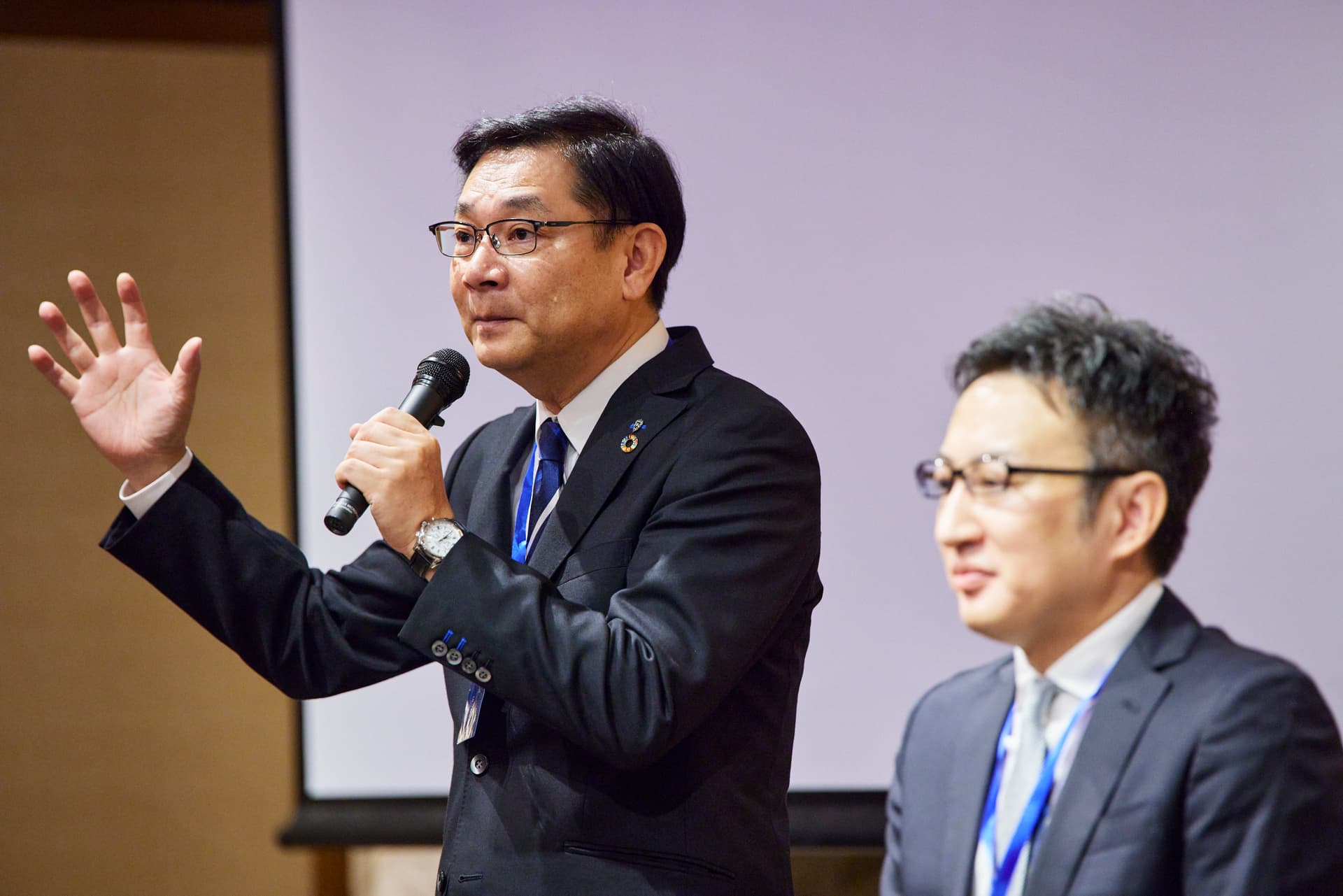 北九州市チームは、2023年に市長へ就任した武内和久氏がビデオ出演。パッション溢れる大英産業代表取締役社長・一ノ瀬謙二氏、北九州市のスタートアップシーンを牽引するクアンド代表取締役CEO・下岡純一郎氏らがプレゼンし、会場は熱気に包まれた。