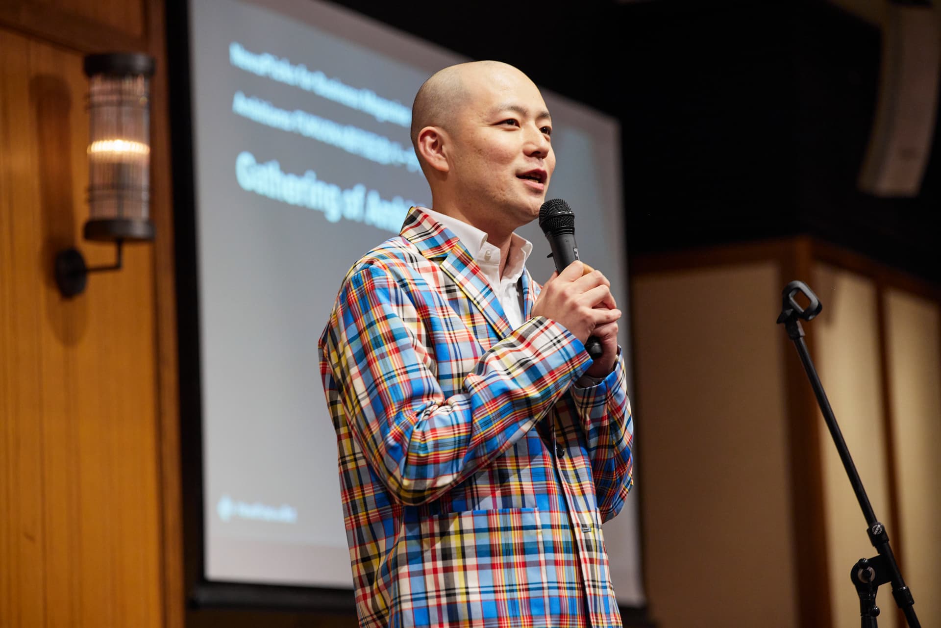 「この度は『Ambitions FUKUOKA』を世に送り出せたこと、大変嬉しく思います。これもひとえに、福岡のビジネスシーンでご活躍の皆さまのおかげです。『Ambitions FUKUOKA』はマガジンとイベントを通じて、福岡の情報発信力を高める、そして地域や分野を越境したビジネスの機会を生み出すことを目的に進めてきたプロジェクトです。今後は『Ambitions FUKUOKA』を含む、クリエイティブとコンテンツの提供により、福岡、そして九州のビジネスの発展に貢献できればと思っております。皆さまと楽しい仕掛けをどんどんつくれたら幸いです。これからどうぞよろしくお願いします」