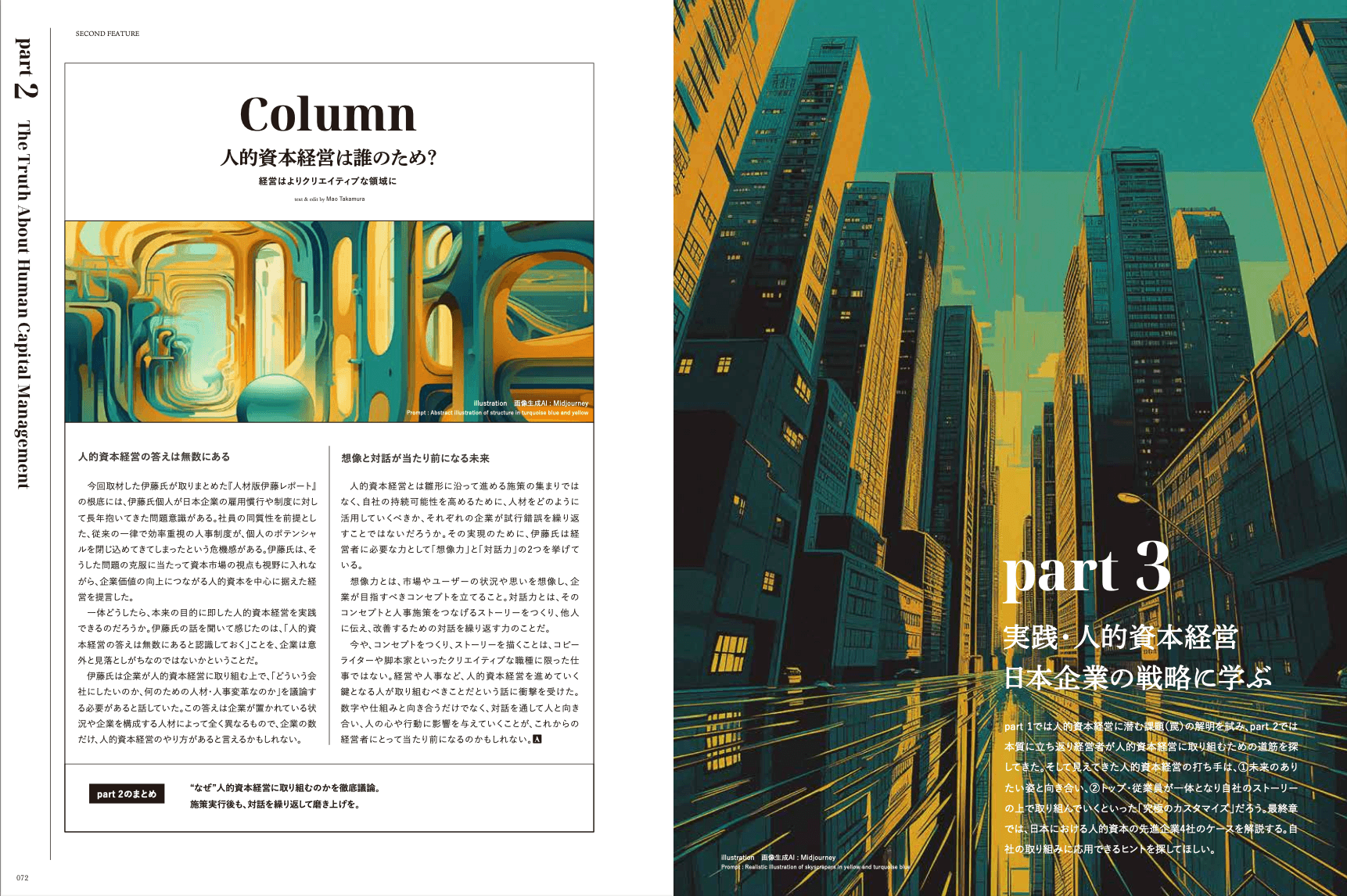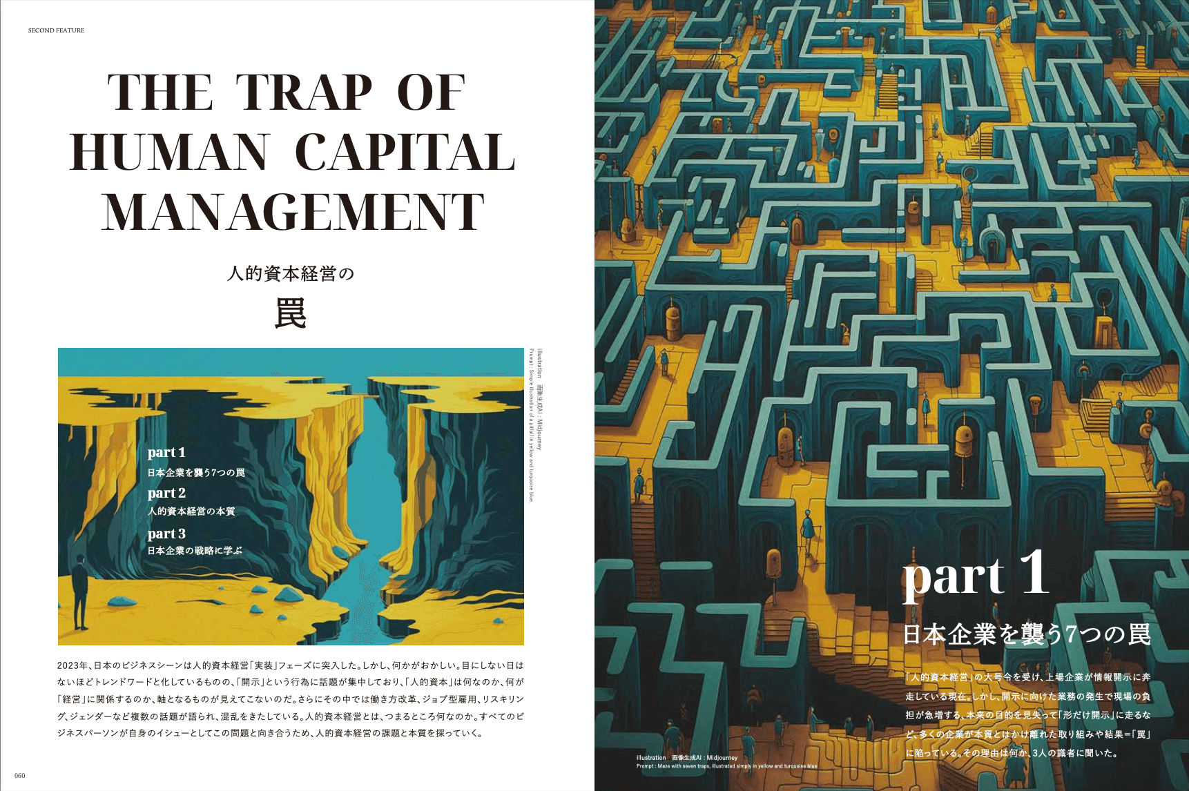髙田 Ambitionsの事例でいうと、2023年に発売したAmbitions VOL.3の企画「人的資本経営の罠」のイメージに、AIを活用しました。
