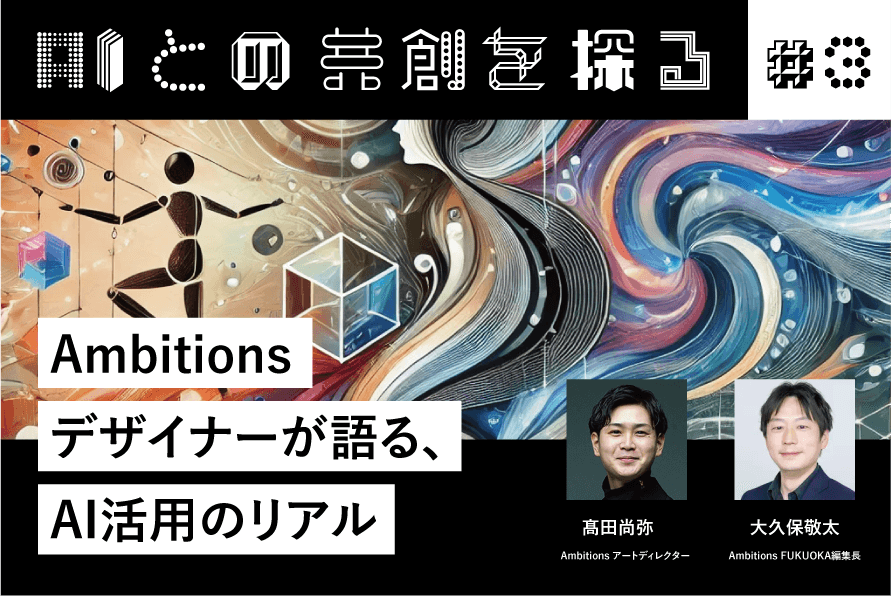 Ambitions×AIの共創プロジェクト連載の第3回。 Ambitions創刊からアートディレクション・デザインを担う髙田尚弥氏を招き、クリエイティブ領域におけるAI活用の現状と可能性を探る。聞き手は、Ambitions事業部編集長の大久保が務める。