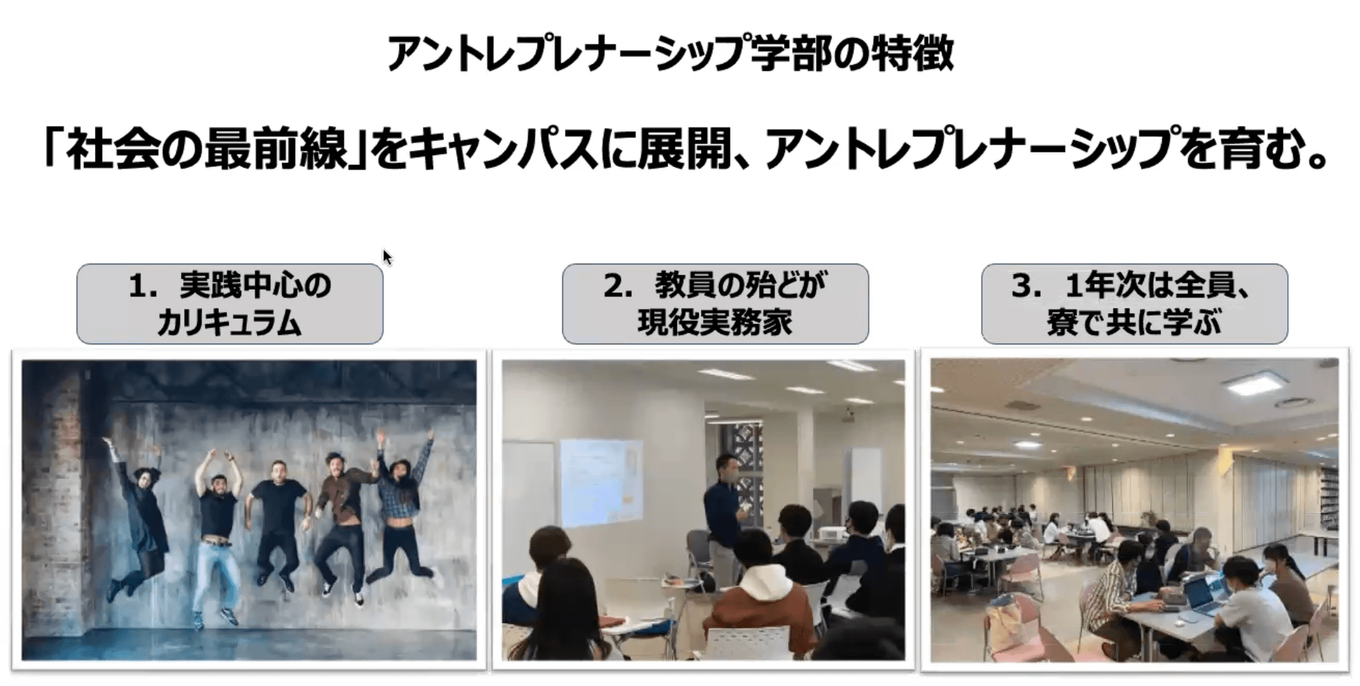 伊藤 正直なところ、僕の想定を超える成果が出ています。アントレプレナーシップ学部の特徴として、授業を通じての起業、現役実務家による教員、初年度の寮生活などの取り組みがあります。