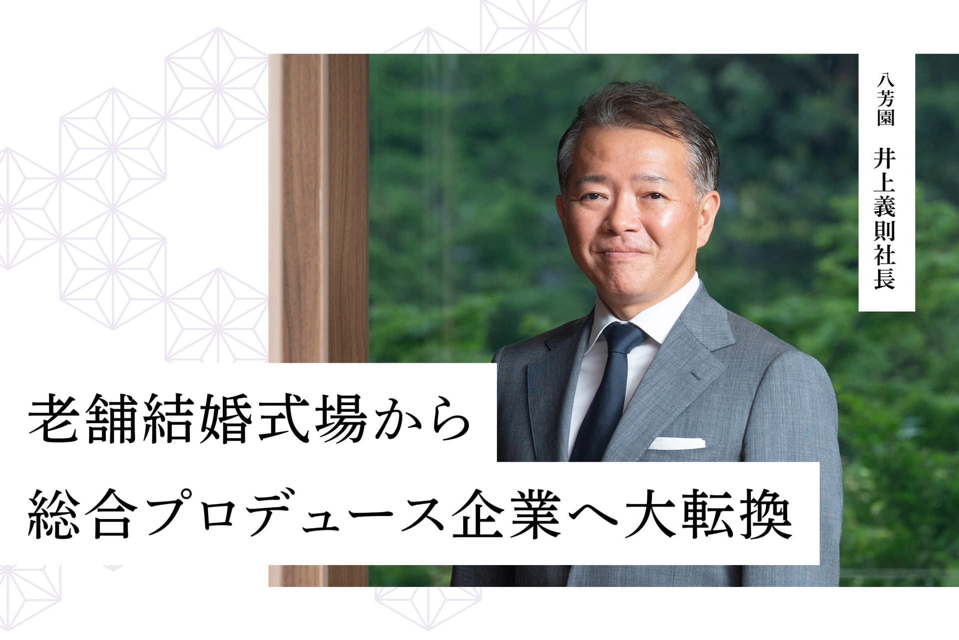 多様化する結婚式のあり方を受け、2000年代には下降線を辿っていたブライダル業界。井上社長は八芳園で「生涯式場」というコンセプトを掲げて挑んだ。過去に結婚式を挙げたカップルを招き、改めて感謝を示す「サンクスパーティ」などの新施策を打ち出し、同時に社内変革を遂行し、事業を導いた。