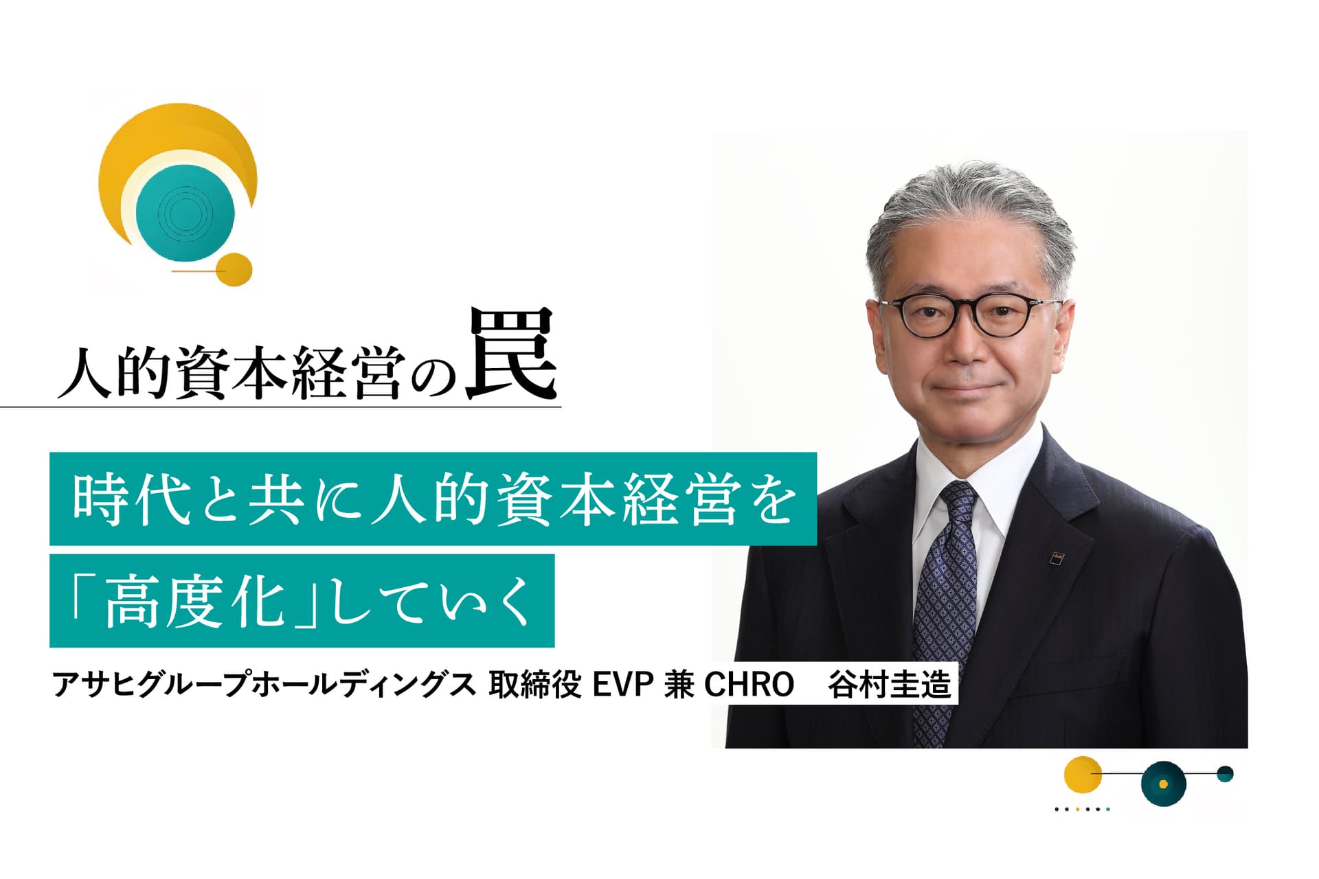 2023年、日本のビジネスシーンは人的資本経営「実装」フェーズに突入した。人的資本経営とは、つまるところ何なのか。すべてのビジネスパーソンが自身のイシューとしてこの問題と向き合うため、人的資本経営の課題と本質を探っていくのが特集「人的資本経営の罠」だ。日本における人的資本経営の先進企業の1社、アサヒグループホールディングスで取締役 EVP 兼 CHROを務める谷村圭造氏に、同社の取り組みについて聞いた。