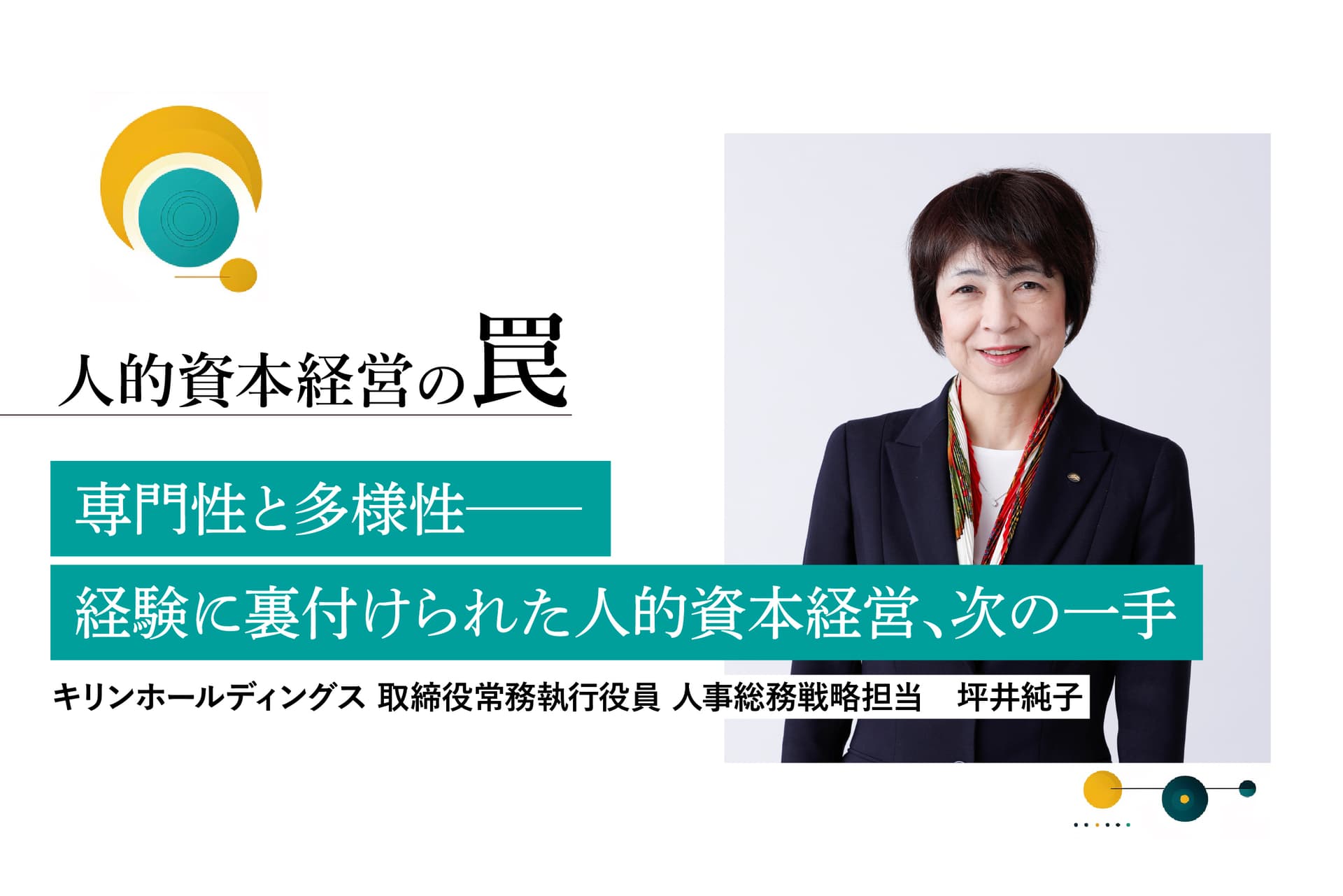 2023年、日本のビジネスシーンは人的資本経営「実装」フェーズに突入した。人的資本経営とは、つまるところ何なのか。すべてのビジネスパーソンが自身のイシューとしてこの問題と向き合うため、人的資本経営の課題と本質を探っていくのが特集「人的資本経営の罠」だ。日本における人的資本経営の先進企業の1社、キリンホールディングスで取締役常務執行役員 人事総務戦略担当を務める坪井純子氏に、同社の取り組みについて聞いた。