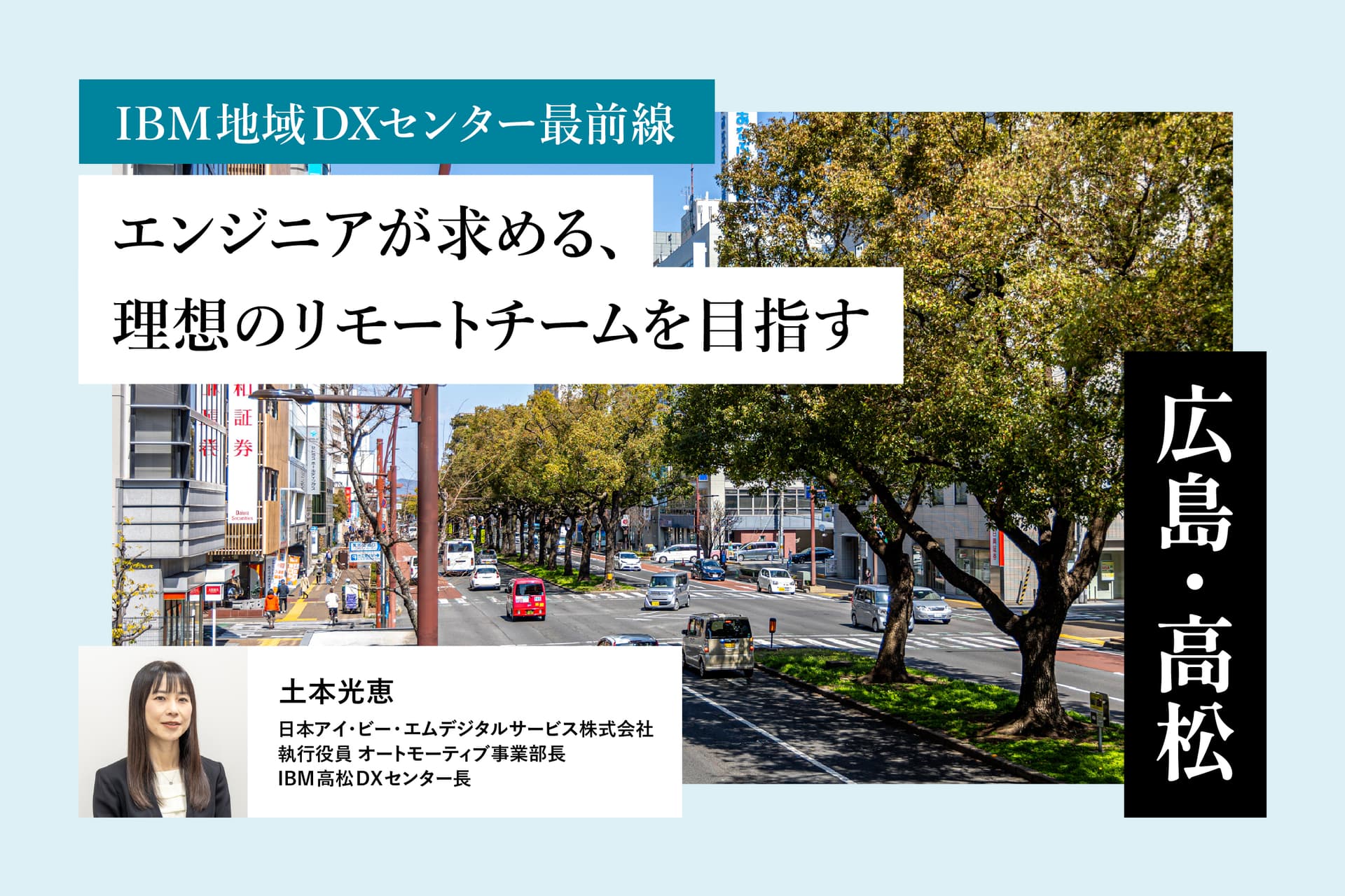 日本アイ・ビー・エムデジタルサービス株式会社(以下IJDS)が全国7カ所に開設した新たな地域拠点「IBM地域DXセンター」が挑むプロジェクトと、地域におけるキャリア形成を追うシリーズ企画、第3回。 2023年5月に開設した広島市と、同年7月開設の高松市。中国・四国エリアの2拠点をリードする、土本光恵氏にインタビュー。さらに、各拠点で勤務するエンジニア2人のリアルな声を届ける。
