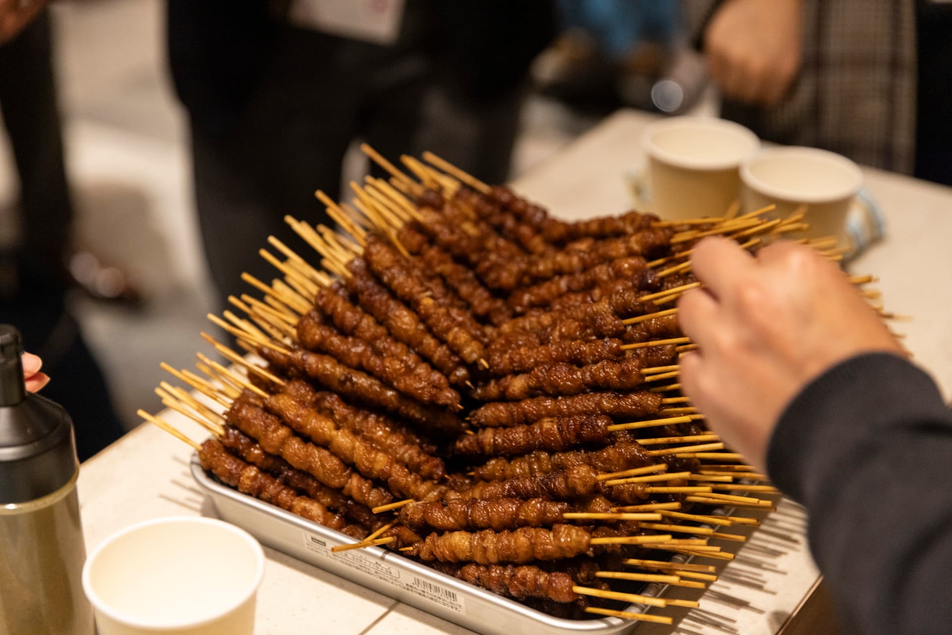 「福岡のビジネス・ポテンシャル」について、現地への企業誘致を進めてきた行政担当者、実際に福岡でビジネスを立ち上げている経営者が語り合うセッション。人気リアリティショー『バチェラー・ジャパン』で2代目バチェラーとして一躍脚光を浴びた、株式会社GHOST代表の小柳津林太郎氏らが登壇。会場では福岡名物の「とりかわ」も振る舞われた。