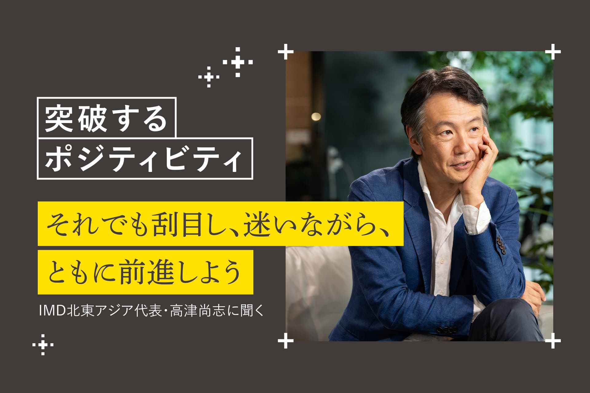 世界のビジネスリーダーを長年育成、輩出してきたスイスのビジネススクールIMD(International Institute for Management Development)で北東アジア代表を務める高津尚志氏に話を聞いた。 果たして世界はポジティブな方向に進んでいると言えるのか──。 時代を切り拓く人に宿る「ポジティビティ」の正体を尋ねたところ、特集のテーマ自体を見つめ直す示唆を得た。果たして、本物のポジティビティとは一体何なのか?