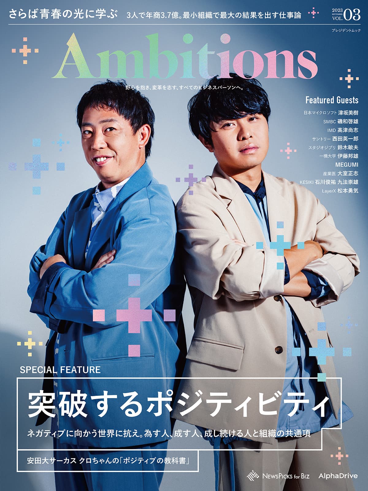 表紙は大人気芸人、さらば青春の光の二人。昨年の年商3.7億円。ビジネスメディアで初めて明かす「最小組織で最大の結果を出す仕事論」とは? 第1特集「突破するポジティビティ」では、人と組織の「ポジティビティ」をフィーチャー。 日本を代表するビジネスリーダーが持つポジティビティや、安田大サーカス クロちゃんら「ネガティブに屈しない人」の秘密を紐解く。 第2特集「人的資本経営の罠」では、人的資本経営の第一人者・伊藤邦雄氏(一橋大学名誉教授)の対談企画も。3部構成で人的資本経営の本質的な論点を探る。
