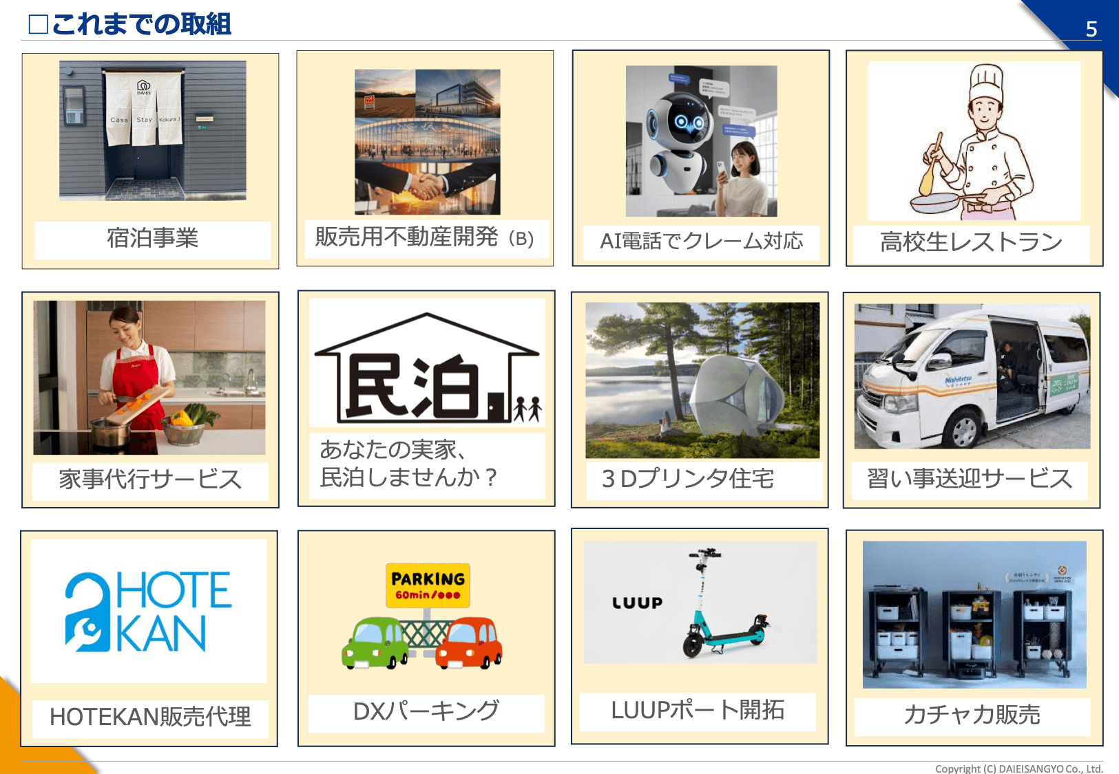 そこからは、宿泊事業や、古い住宅のリフォームと民泊を組み合わせた事業、まだ技術的な課題はありますが3Dプリンタ住宅など、住宅に近い領域を探索しています。