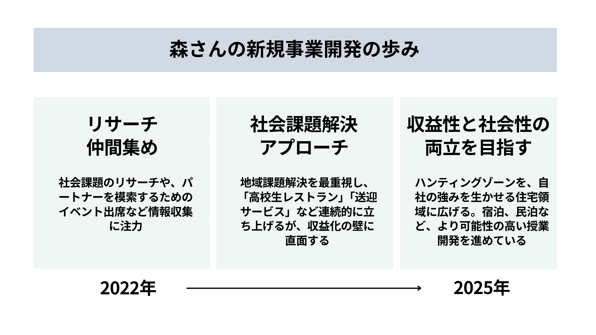 森:①社会課題の解決、②既存事業への還元。この2つを軸に事業を開発することです。