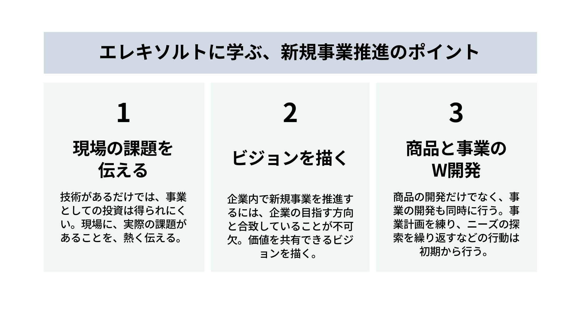 佐藤:新規事業を進めるために、私が意識して取り組んだことは大きく3つあります。