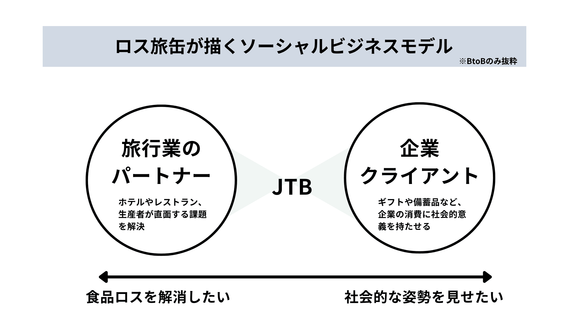 設立1912年、日本を代表する旅行代理店のJTB。 売上1兆円を超える有力企業だが、わずか5年前にはコロナ禍が直撃。同社過去最大の赤字1000億円を計上したことは、今も記憶に遠くない。 パンデミックという未曾有の出来事は、経営層だけでなく現場社員たちの意識も変えた。 企業向けセールスを担当していた小糸さんもそのひとり。JTBの未来を担う新規事業を求め、自社プログラムの第一期生として「ロス旅缶」というフード事業を立ち上げた。 ただのCSR活動ではない。ビジネスとして持続し、食品ロスの課題を変える──。 ビジネスと社会課題を結ぶ、JTB流のゼブラ新規事業に迫る。