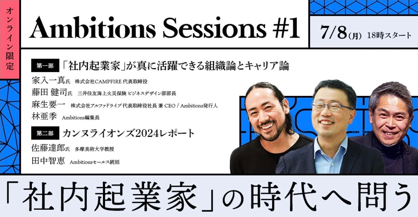 また、Ambitionsは7月8日に無料のオンラインイベントを実施します。テーマは「『社内起業家』の時代へ問う」。企業のアセットを活用し、未来を見据えて新境地を切り拓く社内起業家や社内イノベーターが真に活躍できる社会や組織にするために一体何が必要かを議論します。