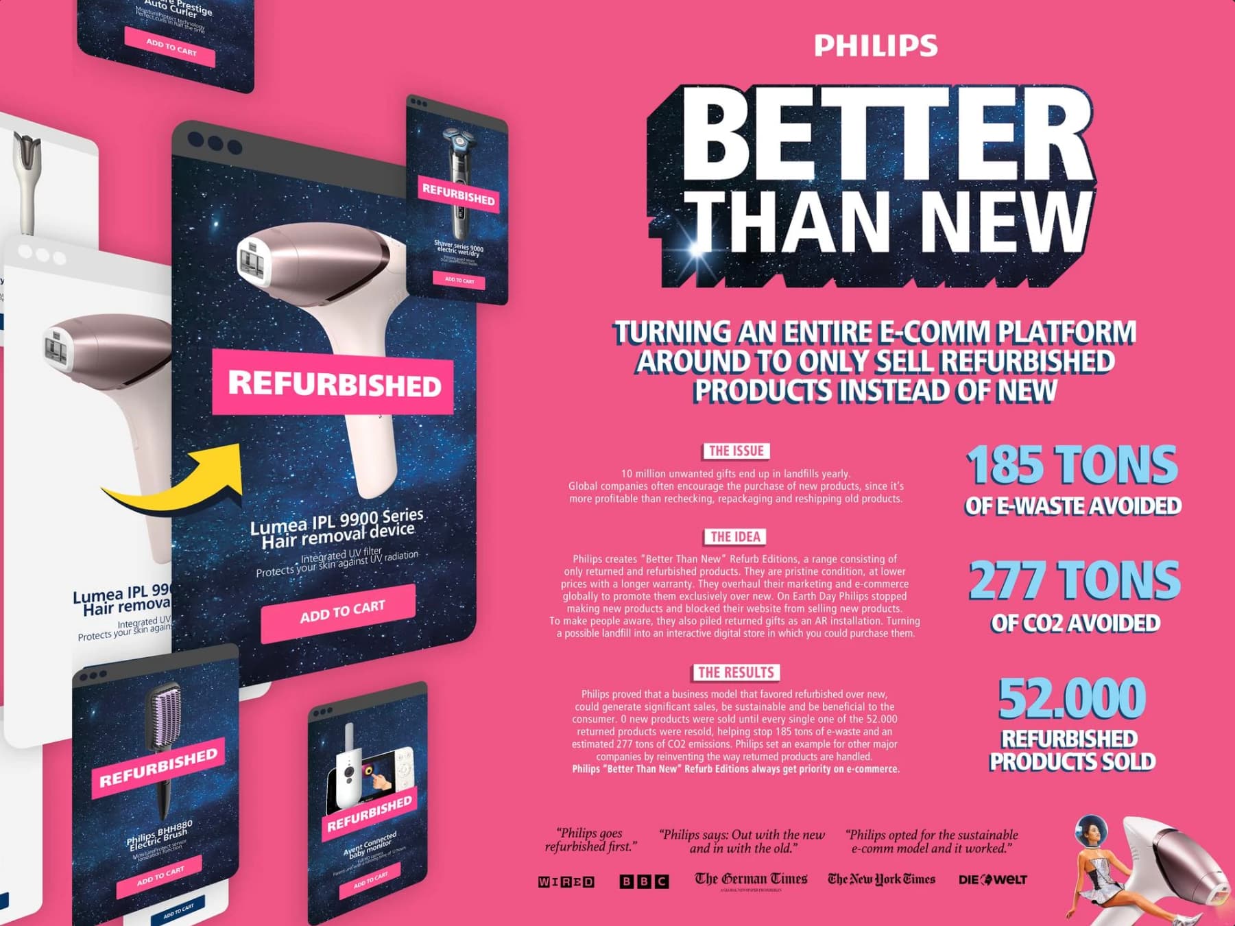 結果、返品されたフィリップス製品5万2000個が完売。185トンの電子廃棄物と推定277トンのCO2排出が抑制され、キャンペーンは消費者の意識向上にも寄与しました。