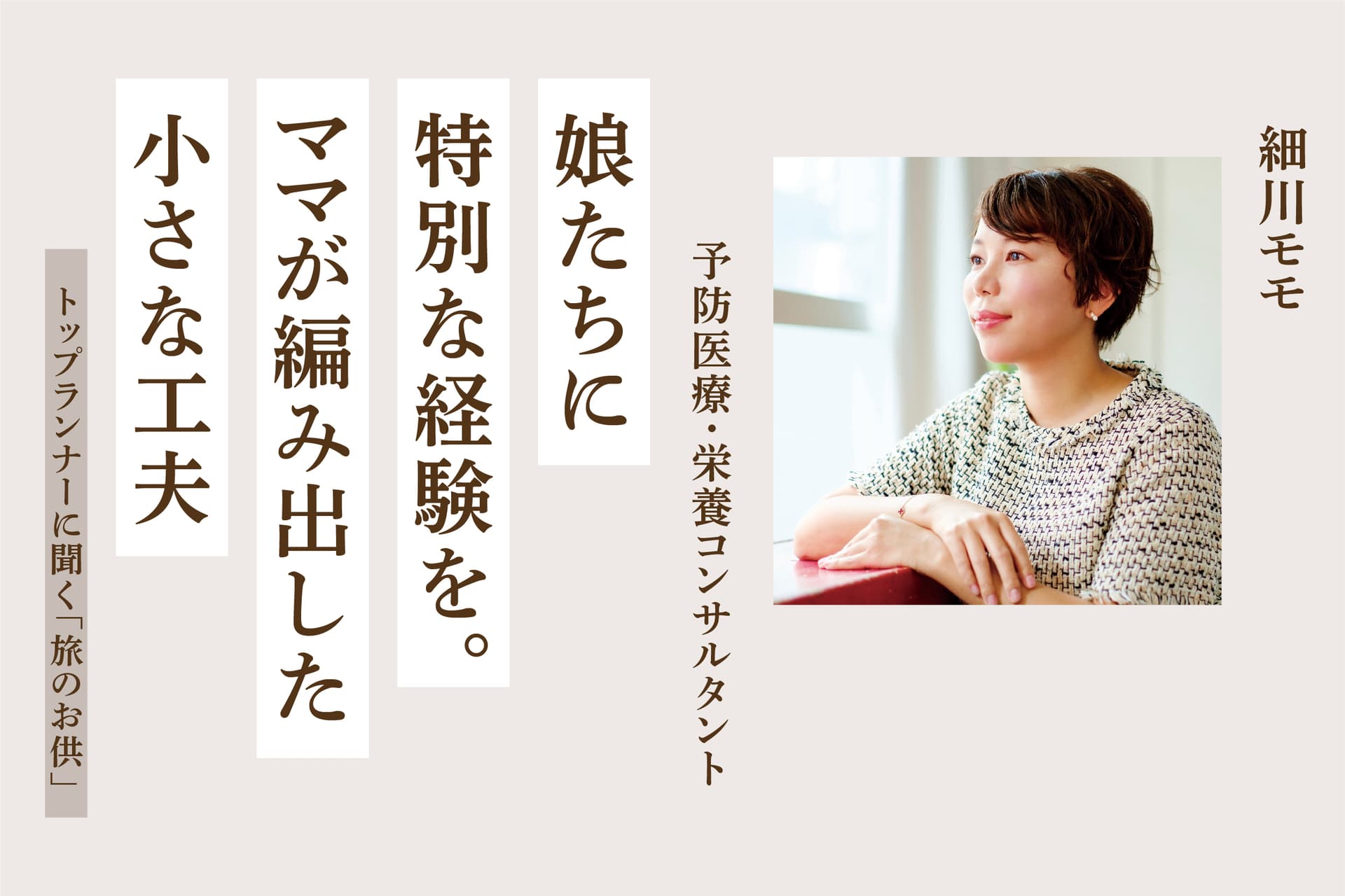 ビジネスやクリエイティブの世界で活躍するトップランナーたち。国内外を飛び回る彼ら彼女らの哲学やこだわりは、移動中や旅先においても発揮されている。では、観光産業の回復をはじめ、これまで以上に「旅」が日常に戻るとされるなか、トップランナーたちはどんな「旅のお供」と各地を飛び回っているのだろうか。移動を楽しむため、時短のため、そして、自分らしくあるため……。特集「わたしが前に進むために。トップランナーに聞く『旅のお供』」では、各自の「お供」に込められた思いを通じて、“前に進む”ヒントを考える。 いくつもの仕事道具を詰め込み、飛行機や電車を乗り継いでようやく会場に……。予防医療の専門家・細川モモさんは、全国出張の苦労と向き合う一人だ。一方で、2児の母として「家族での移動」にもこだわる細川さんに、出張と家族旅行を両立する工夫を聞いた。