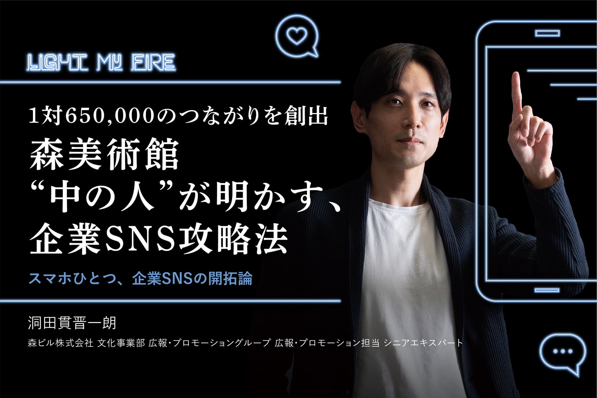 総フォロワー数、65万人超※。東京・六本木にある森美術館のSNSアカウントは、国内美術館トップの人気を誇っている。その戦略と実行を一手に担う“中の人”が、洞田貫晋一朗氏だ。社内の担当はたった一人という環境、主だった前例や成果のないプロジェクト。その中で、洞田貫氏はどのように成果を上げてきたのだろう。“中の人”の頭の中を探った。 ※森美術館の公式SNSアカウント(Twitter、Instagram、Facebook)の総フォロワー数(2022年12月時点)