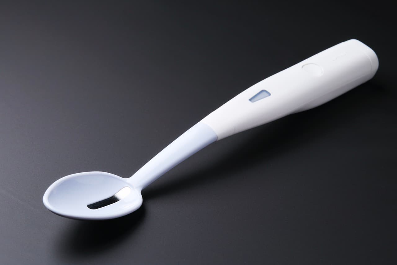 微弱な電流の力で塩味やうま味を引き出す「スプーン型」デバイス。普段の食事に使用することで味を濃く感じる。食の楽しみを失わず減塩生活を送っていただきたいという思いで製品化。2024年5月からオンラインストアで販売を開始。