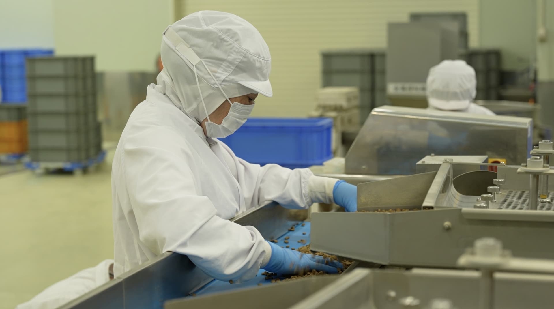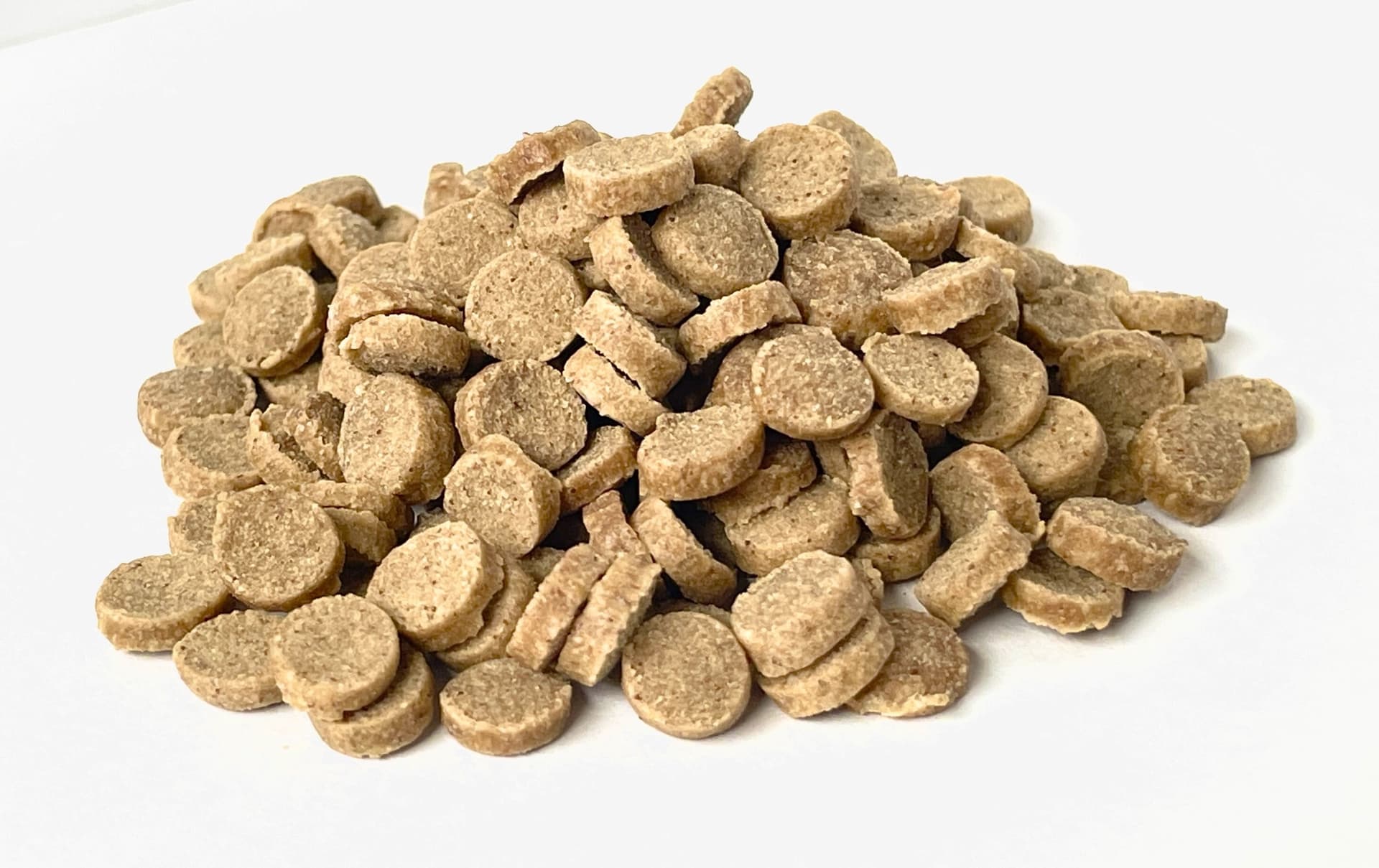 ドッグフードは、大きく「一般食」と「総合栄養食」に分かれます。私たちは、犬の健康を守ることを目的にしていたので、総合栄養食として基準が満たされるように栄養価などをふまえ、原料を配合しながら試作を進めました。1年半ほどの期間を経て完成させたレシピは、ノンオイルコーティング、小麦グルテンフリー、香料・合成酸化剤無添加と、犬の健康を第一に考えた仕様になっています。