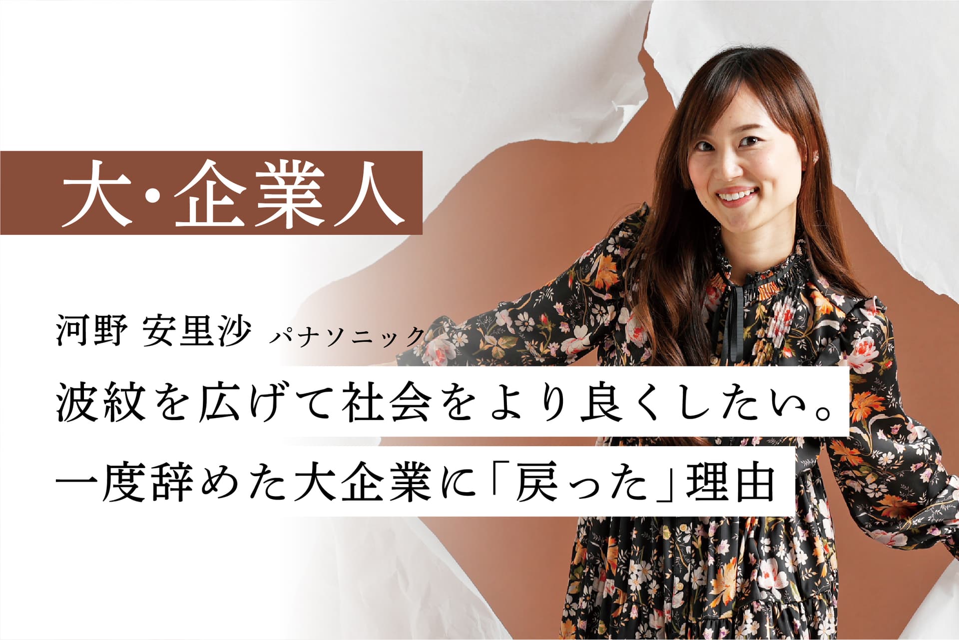 いつか人生を終えるとき、遠回りだったとしても自分で決めた道ならそれは正しいし、失敗なんて存在しない──。パナソニックで採用ブランディングを担当している河野安里沙氏が、自ら手掛ける採用ホームページで発信した言葉だ。パナソニックで働くことの魅力を、主に学生や求職者に向けて発信している河野氏。社員の思いや、やりがいを生の声で伝えるインタビュー記事を新たに企画し、自ら取材や執筆を手掛けることもある。パナソニックで働く魅力を「人の思い」という切り口から伝えるパイオニアだ。 そんな河野氏だが、一度パナソニックを退社し、また中途入社で戻ってきた経歴を持つ。なぜ戻ったのか、退社したときにどのような景色が見えたのか。河野氏のインタビューから明らかになったのは、大企業が持つ社会への影響力の大きさ、そして自分の可能性を最後まで信じ切る強さだった。
