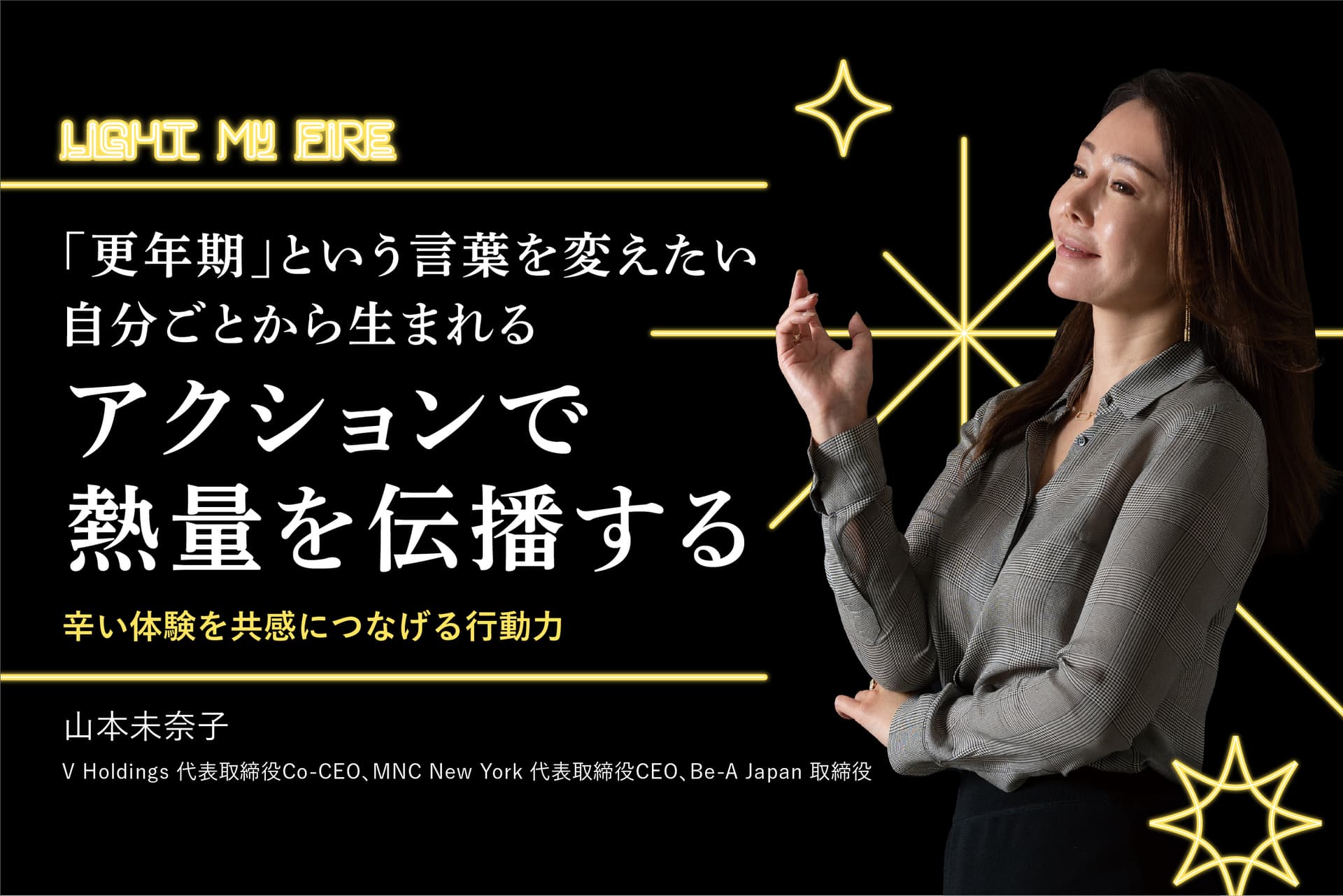 累計販売枚数が11万枚超、最大150mlの吸水が可能な超吸収型サニタリーショーツを開発し展開するBe-A Japanの山本未奈子さん。これまでナプキンやタンポンなどがメインだった生理用品の分野に、優れた吸水力で交換しなくても穿き心地良く1日を過ごせるショーツを投入し、フェムテック市場を切り拓いている。常に熱量を持って仕事をしてきた山本さんだが現在、更年期障害の症状に悩みながら日々を過ごしている。更年期をきっかけに「心の火は消えてもいい。またつくので待てばいい」と考えるようになった山本さん。背景にある思いとは。