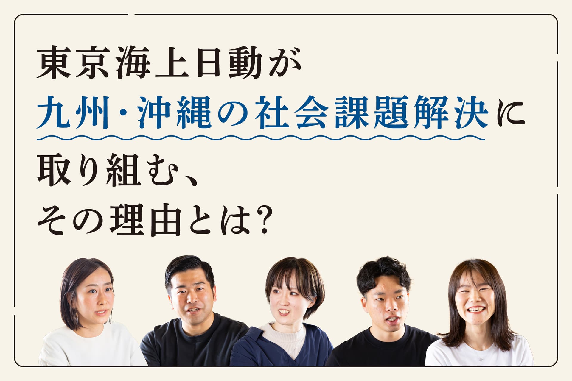 1879年に日本で最初に設立された保険会社「東京海上」と、「日動火災」が合併し、2004年に誕生した東京海上日動火災保険株式会社(以下、東京海上日動)。 同社は現在、「九州・沖縄の社会課題」の解決に挑んでいるという。なぜ、保険会社が社会課題の解決に取り組むのか? 九州・沖縄各地で活動する同社のメンバー5名に話を聞いた。
