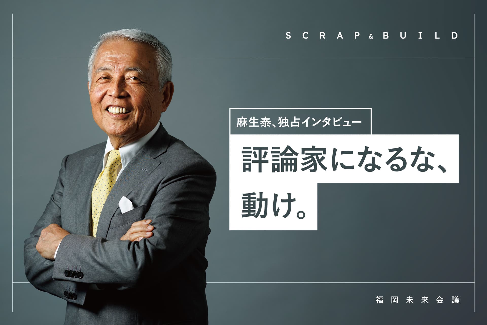 突然ですが、クイズです。 1.世界のGDPで、日本が占める割合。1995年は17.6%、2022年は何%でしょう。 ──正解は4.2%。(※1) 2.日本人のパスポートの保有率は何%でしょう? ──正解は、約17%。 知ってましたか? 日本は今、想像以上に、危機的で閉鎖的なんですよ。 ──長年、九州の経済を牽引し続けてきた麻生泰氏は、 インタビューの席につくなり、「クイズ」から日本の現状を語り始めた。 麻生氏は未来の日本に、どのような危機感を抱き、どのような希望を見るのだろうか。 変わりゆく福岡で、私たちビジネスパーソンたちは、何に気づき、何に取り組むべきだろう。 次世代の福岡経済を担うすべてのビジネスパーソンへ、麻生氏のメッセージを届ける。