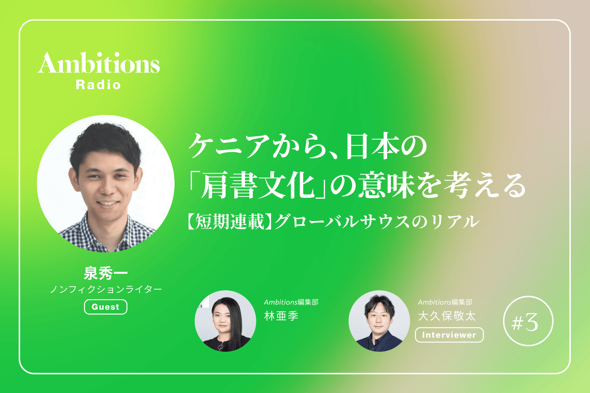 「Ambitions Vol.5」の発売を記念して、編集部メンバーによるPodcast番組を配信。 取材の裏話や誌面の狙いを、web限定でお届けします。 第一回はAmbitions事業部編集統括の大久保敬太。 特に印象的だったという、2つの取材について振り返ります。